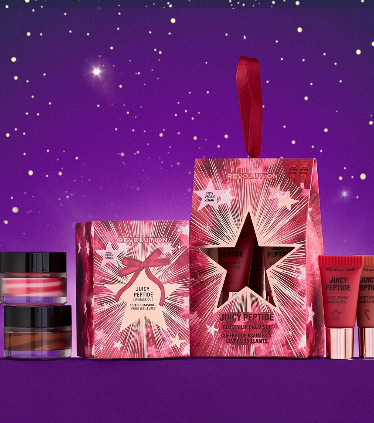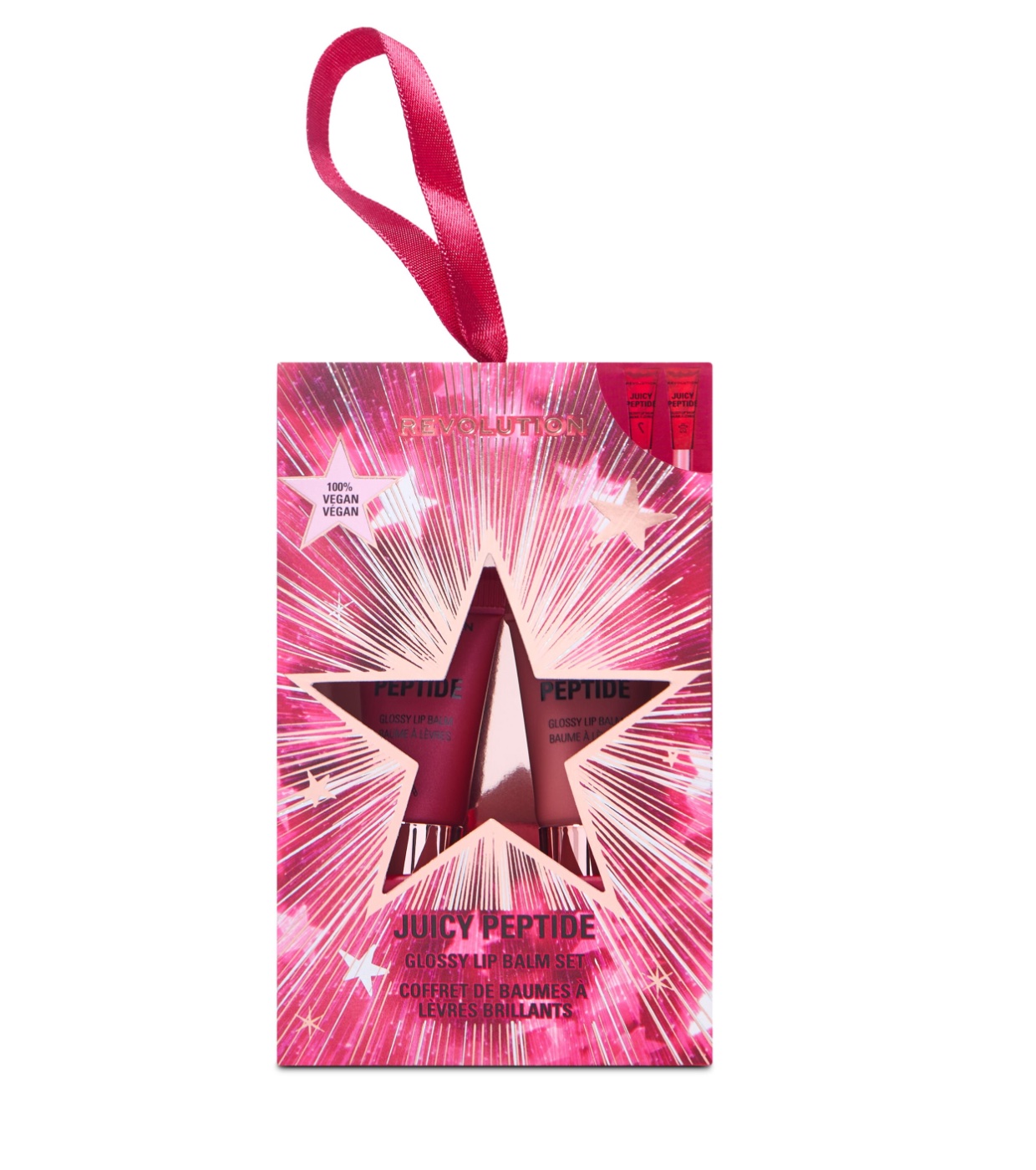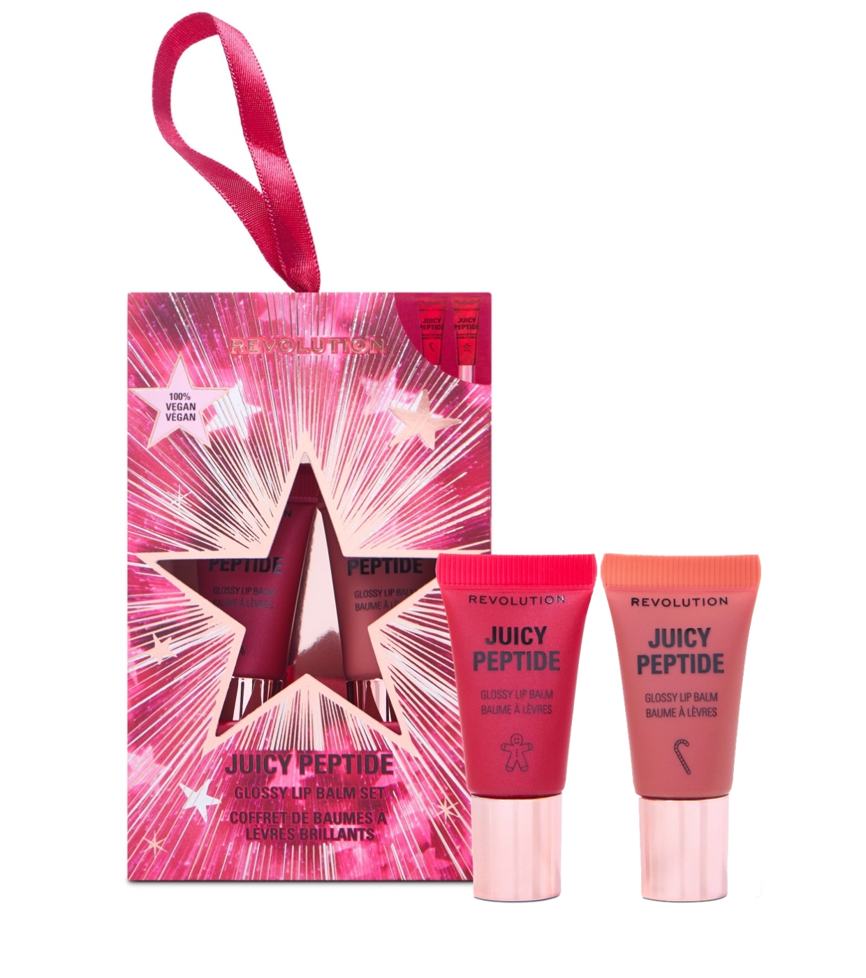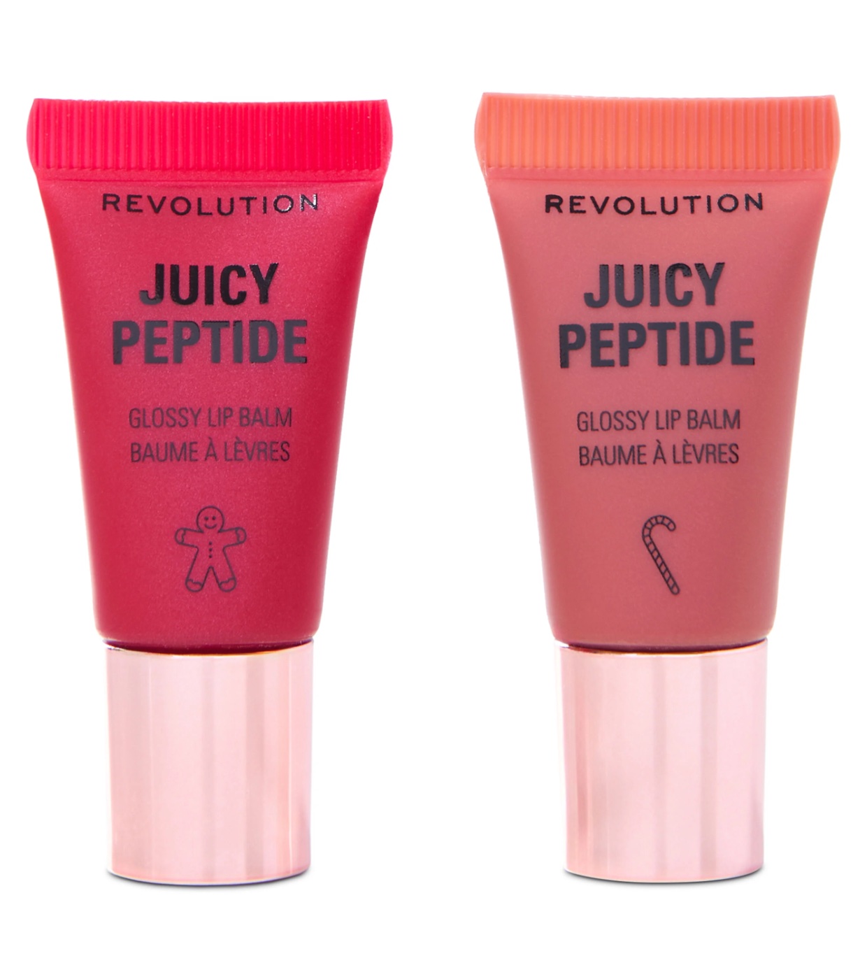 Seus bálsamos Juicy Peptide favoritos, agora com um toque festivo com o Juicy Peptide Mini Lip Balm Gift Set da Revolution !
