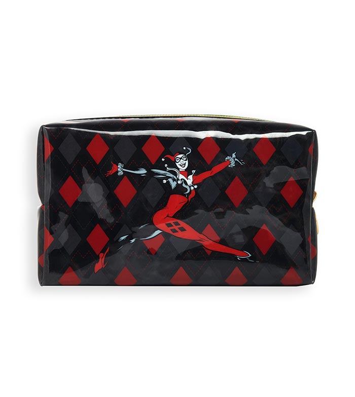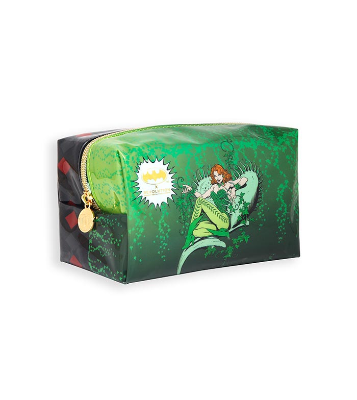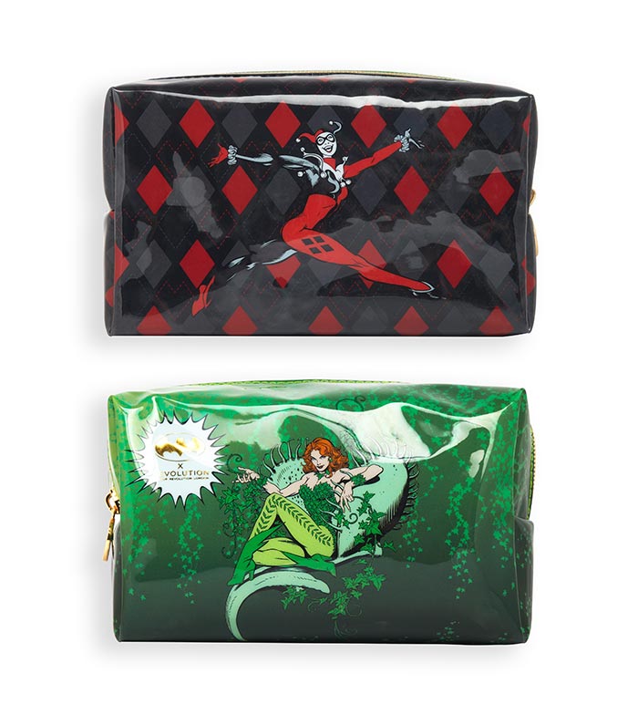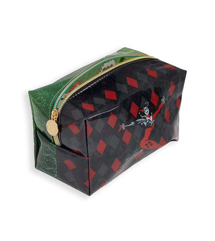 Guarde seus produtos das coleções Gotham City com estilo nesta bolsa de cosméticos dupla face: de um lado você pode apreciar o design de Poison Ivy e do outro o de Harley Quinn.
