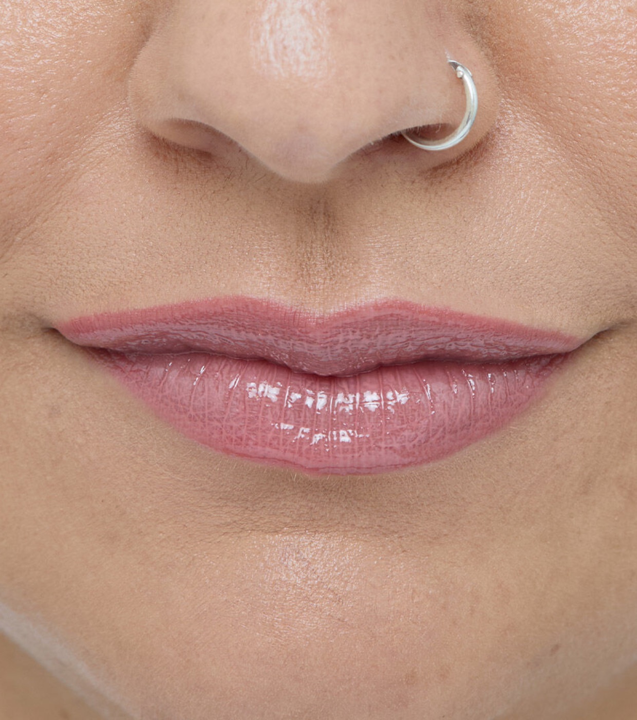 Aplicar diretamente nos lábios, seguindo o formato natural ou no arco de cupido e no centro do lábio para obter lábios mais cheios.