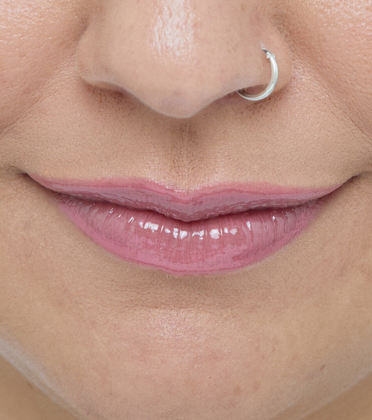 Aplicar diretamente nos lábios, seguindo o formato natural ou no arco de cupido e no centro do lábio para obter lábios mais cheios.