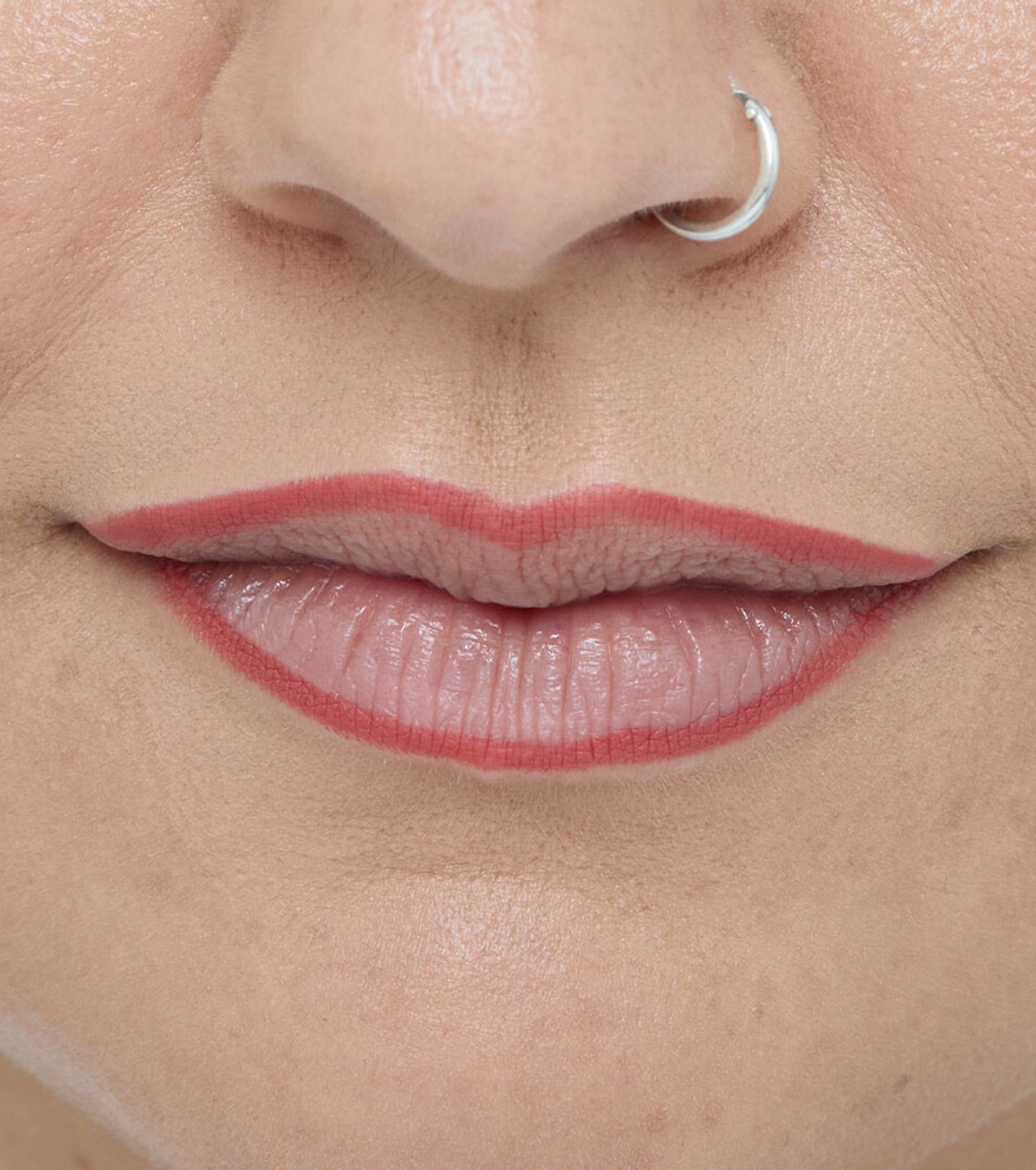 Aplicar diretamente nos lábios, seguindo o formato natural ou no arco de cupido e no centro do lábio para obter lábios mais cheios.