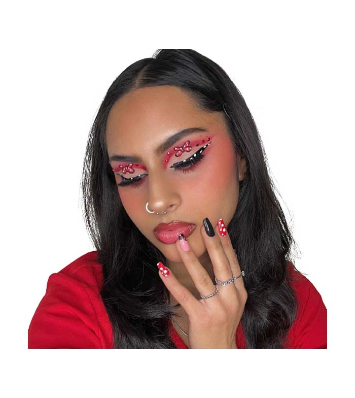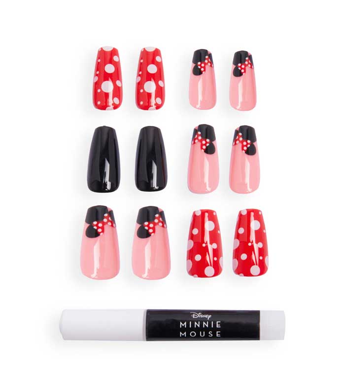 Consiga as garras mais fofas com este pacote de 24 unhas postiças, com as icônicas orelhas, lacinhos e bolinhas da Minnie.