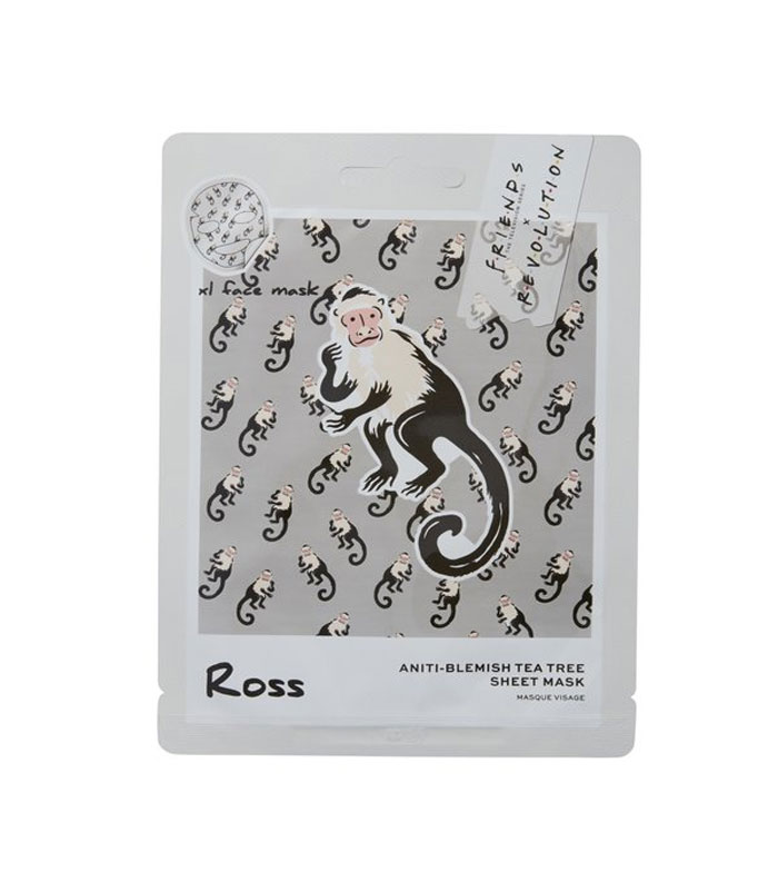 Máscara facial de tecido com extratos de tea tree da coleção Friends X Revolution.