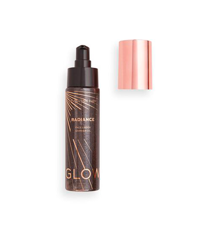 Agite e brilhe! O óleo corporal Revolution Radiance Shimmer para o rosto e o corpo deixará você com um brilho deslumbrante e deslumbrante, com uma fragrância de coco e abacaxi.
