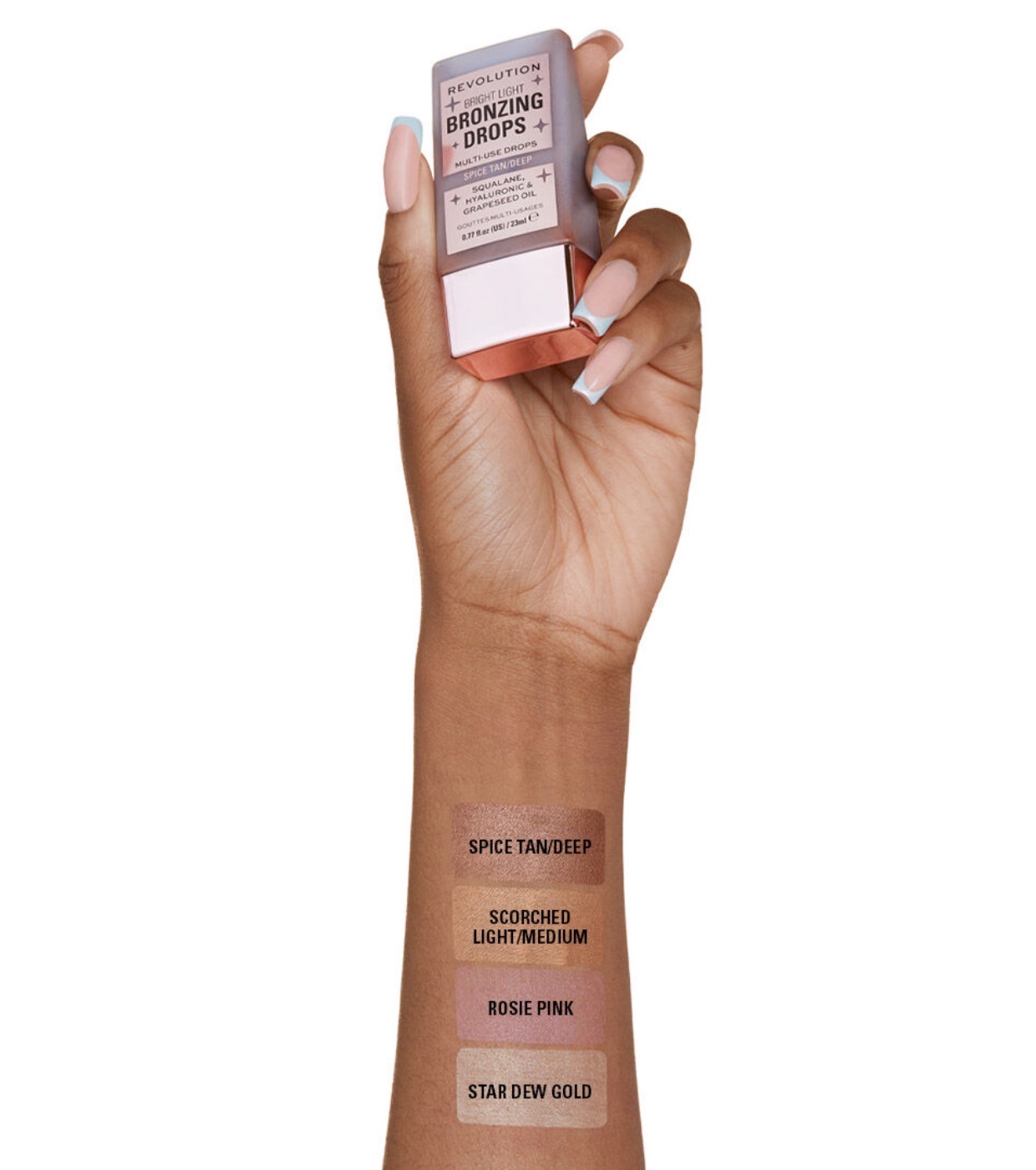 Uma gota de luminosidade instantânea; bronzeie-se e brilhe com as gotas bronzeadoras Revolution Bright Light.
