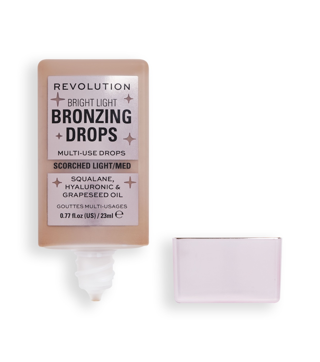 Uma gota de luminosidade instantânea; bronzeie-se e brilhe com as gotas bronzeadoras Revolution Bright Light.
