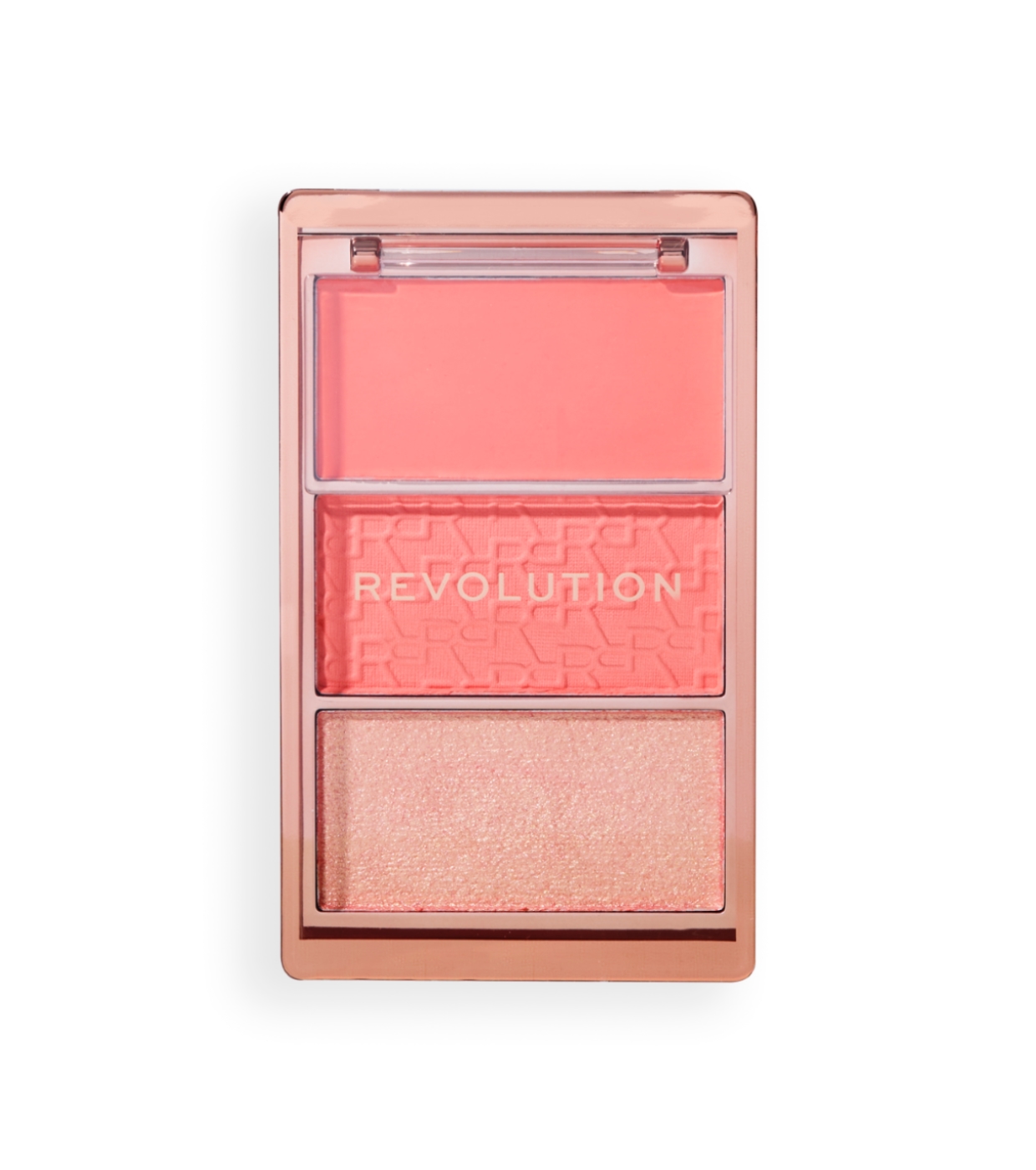 A paleta Icon Blush da Revolution é um trio essencial com fórmulas cremosas, matte e brilhantes para um blush que dura o dia todo.