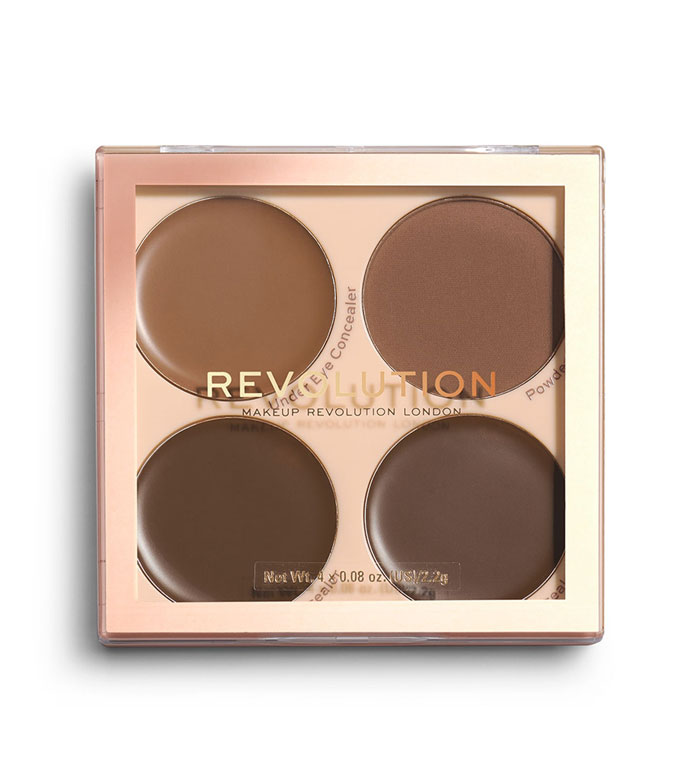 Abrange as imperfeições, as irregularidades da pele e as olheiras, com a paleta de Corretores Base Matte da Revolution.