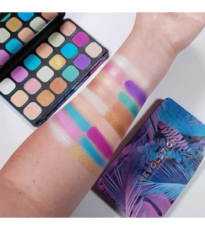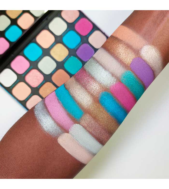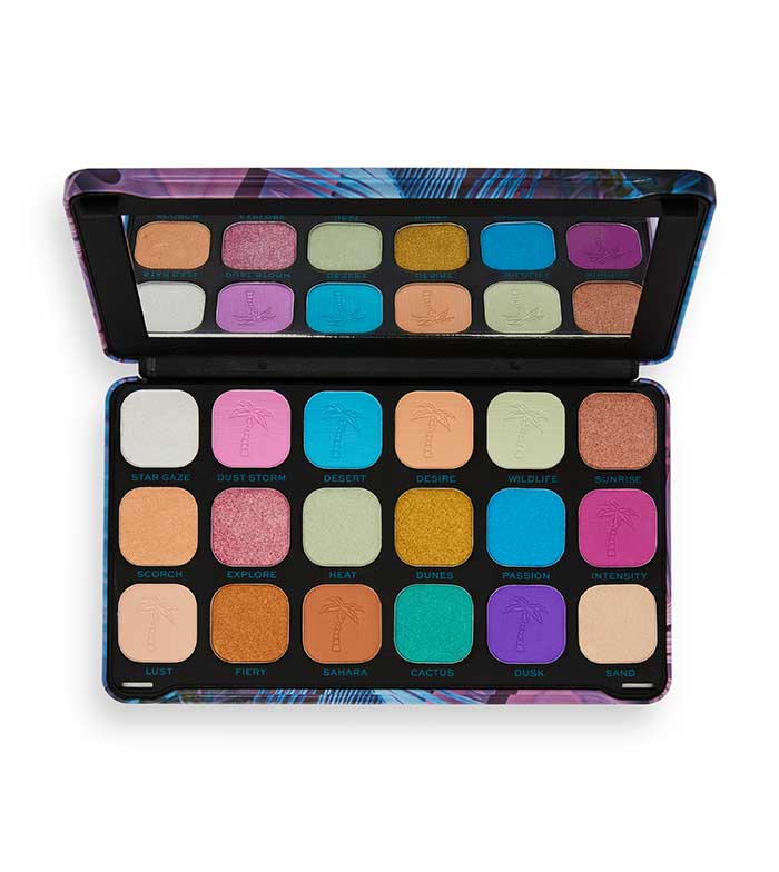 Crie looks originais inspirados em tons desérticos com um toque de cor como na noite de Ibiza, com a paleta de sombras Desert Desire Forever Flawless da Revolution .