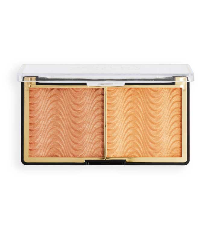 Contém um tom de contorno com acabamento fosco cremoso, com o qual você pode esculpir o rosto e as maçãs do rosto, e um tom ideal para iluminar e realçar seus traços.