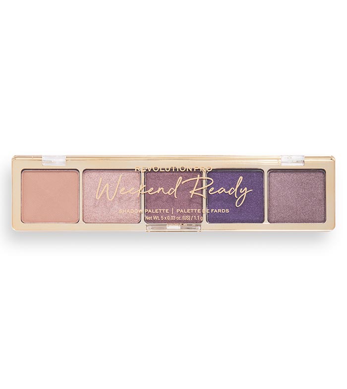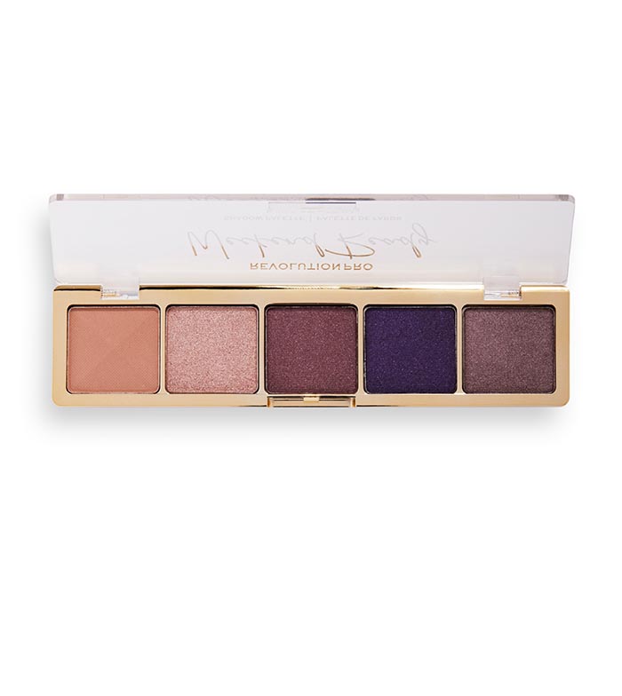 Paletas de sombras com 5 tons suaves em acabamentos foscos e metálicos.