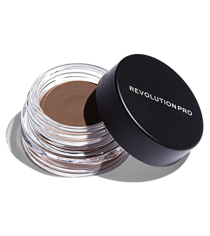 Aplica uma pequena quantidade com um pincel angulado, define a forma da sobrancelha e preenche para uma aparência mais completa.