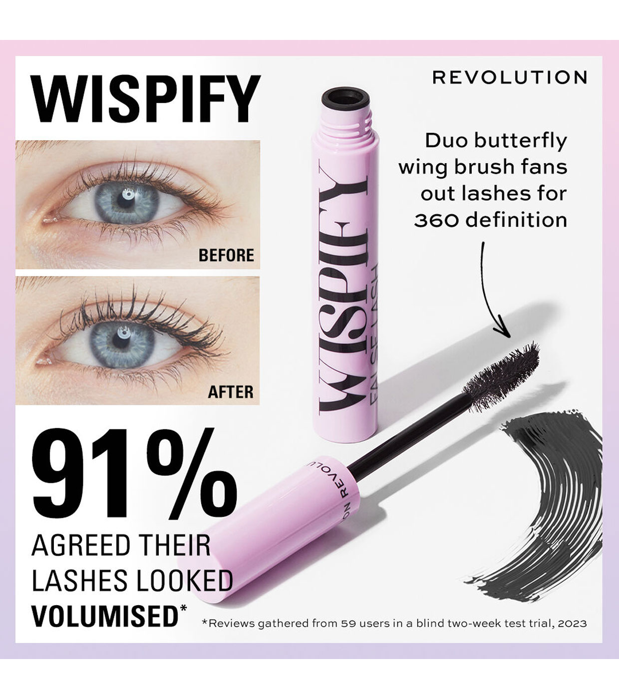 Descubra a revolução na sua rotina diária de maquiagem com Wispify False Lash da Revolution , a máscara que multiplicará seus cílios de todos os ângulos, conseguindo um efeito marcante de olhos abertos.