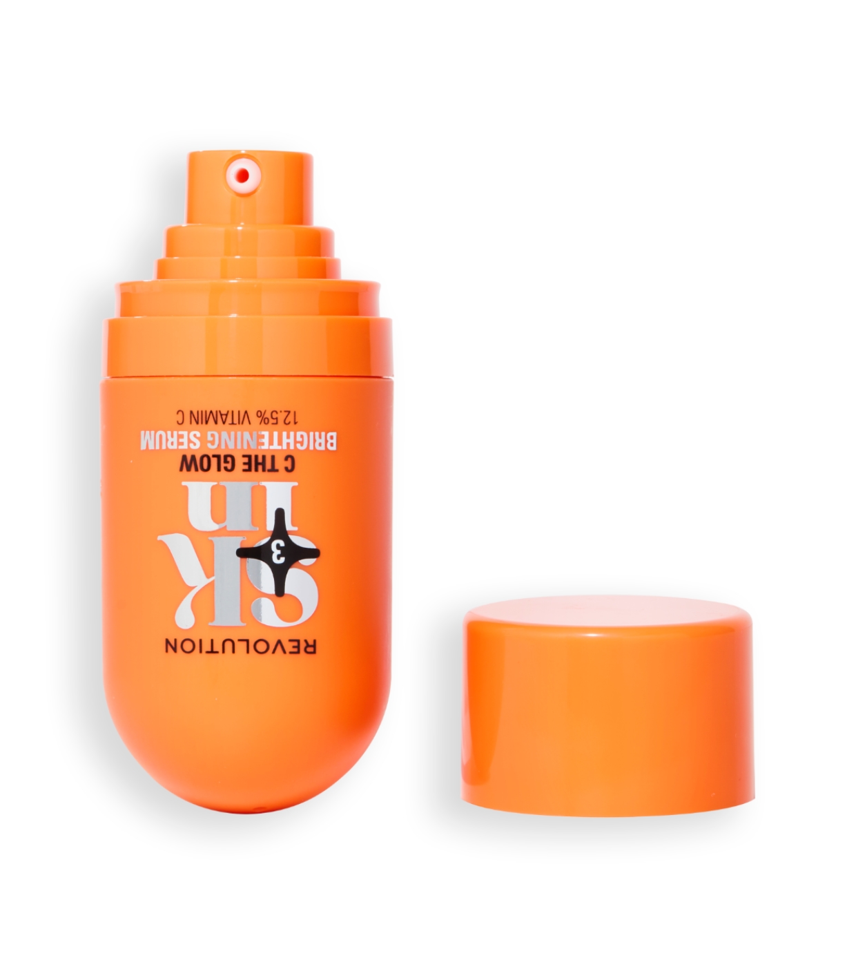 Obtenha um brilho intenso com este poderoso sérum facial iluminador C the Glow da Revolution Skin formulado com 12,5% de vitamina C e óleo de semente de uva.