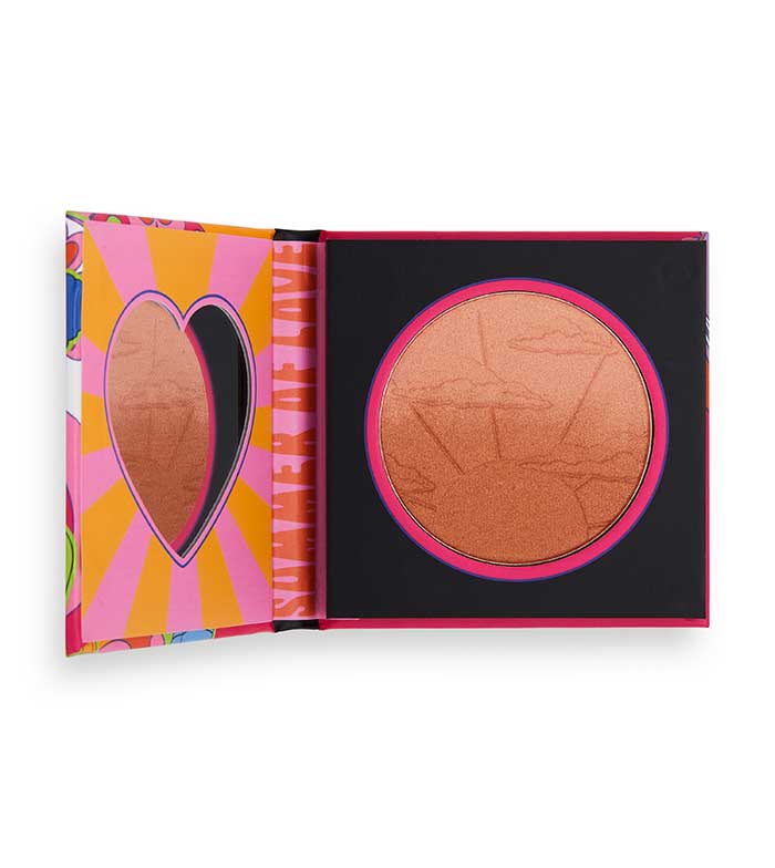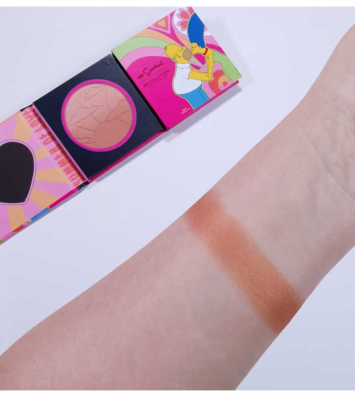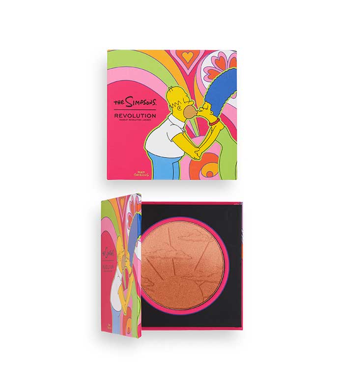 Obtenha um brilho perfeito ao longo do dia graças ao iluminador em pó Ombre Highlighter The Simpsons Summer of Love x Revolution .