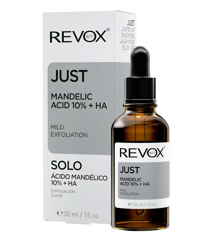 O ácido mandélico é um alfa-hidroxiácido aromático derivado de amêndoas amargas e é mais suave do que outros AHAs, como o ácido glicólico.