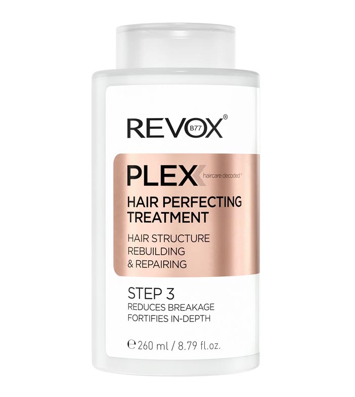 O tratamento aperfeiçoador Plex Hair Perfecting Step 3 é o terceiro passo da linha de reparação capilar Revox.
