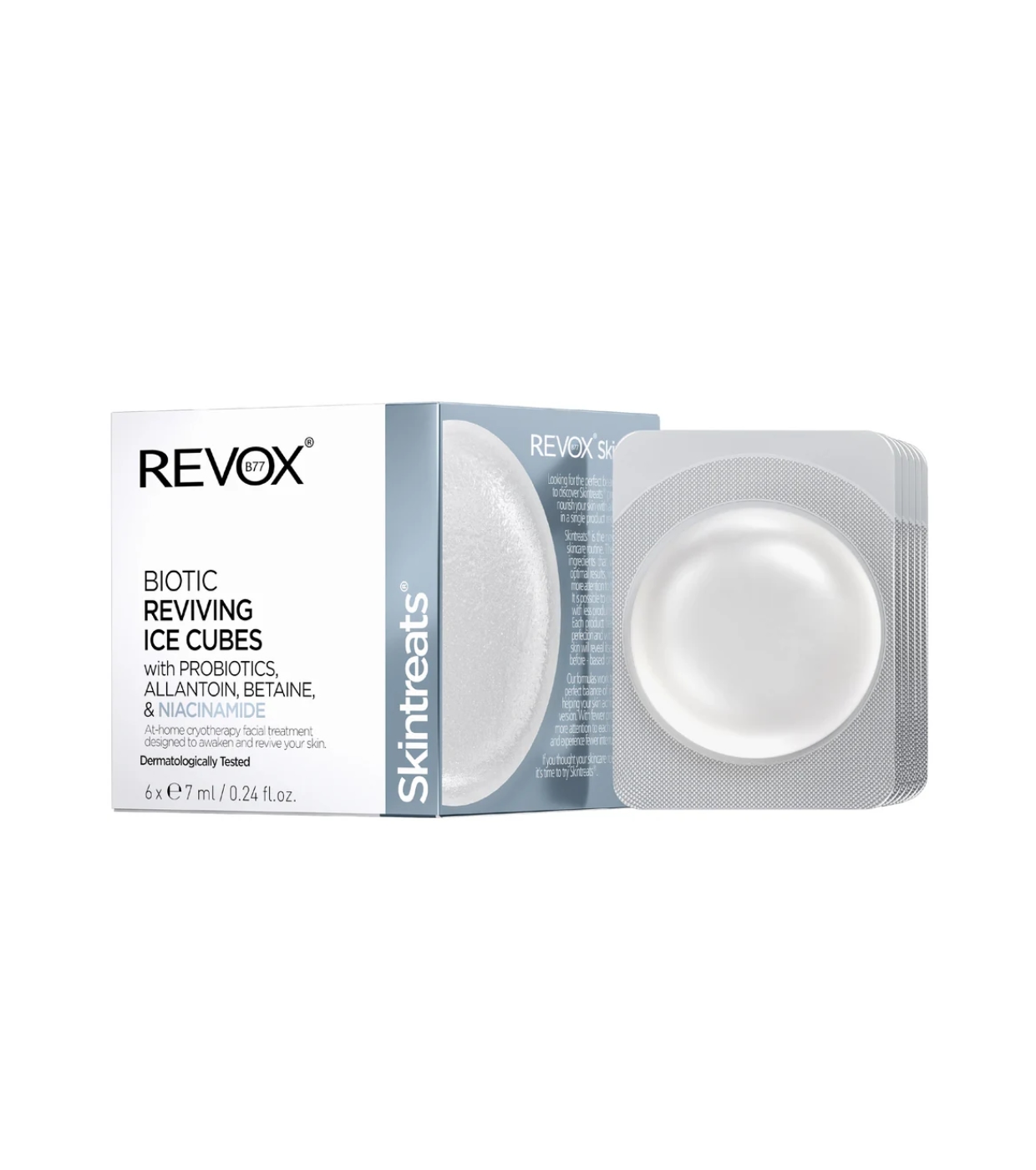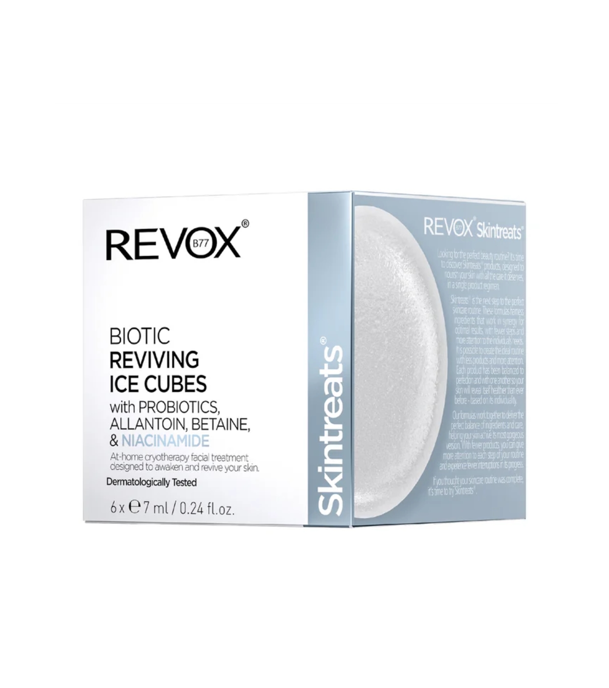 Desfrute de um tratamento de crioterapia no conforto da sua casa com os Ice Cubes Revitalizantes da gama Skintreats da Revox , concebidos para revitalizar a sua pele e dar-lhe um aspecto fresco e renovado.