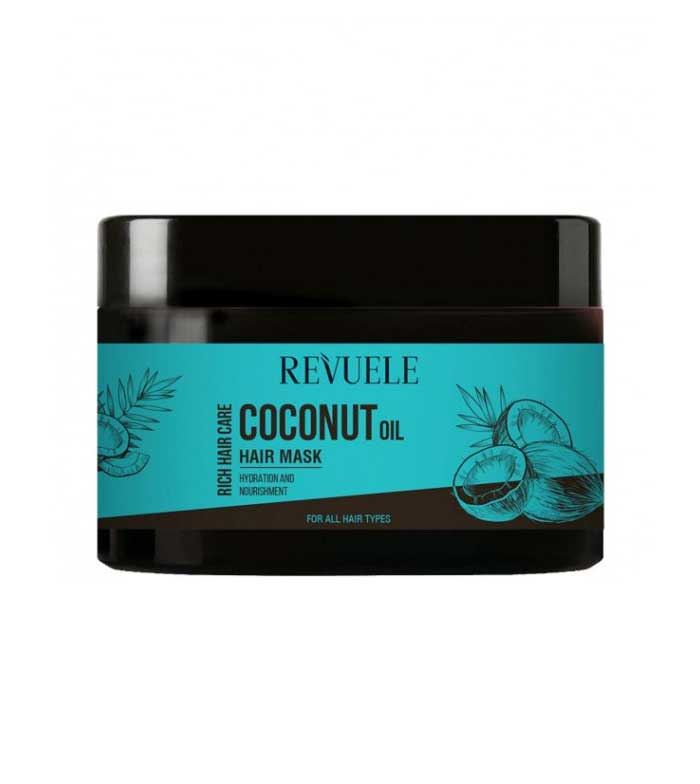Adquira a máscara hidratante e nutritiva Coconut Oil para todos os tipos de cabelo da Revuele e obtenha uma juba de película.