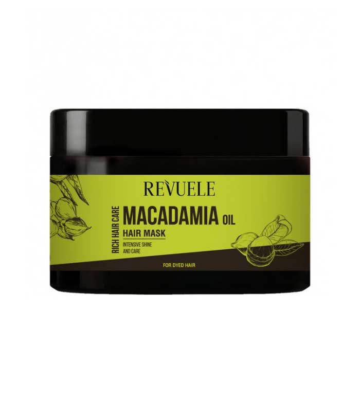 Obtenha a máscara de brilho e cuidado intenso Macadamia Oil para cabelos coloridos da Revuele e dê ao seu cabelo um brilho incrível.