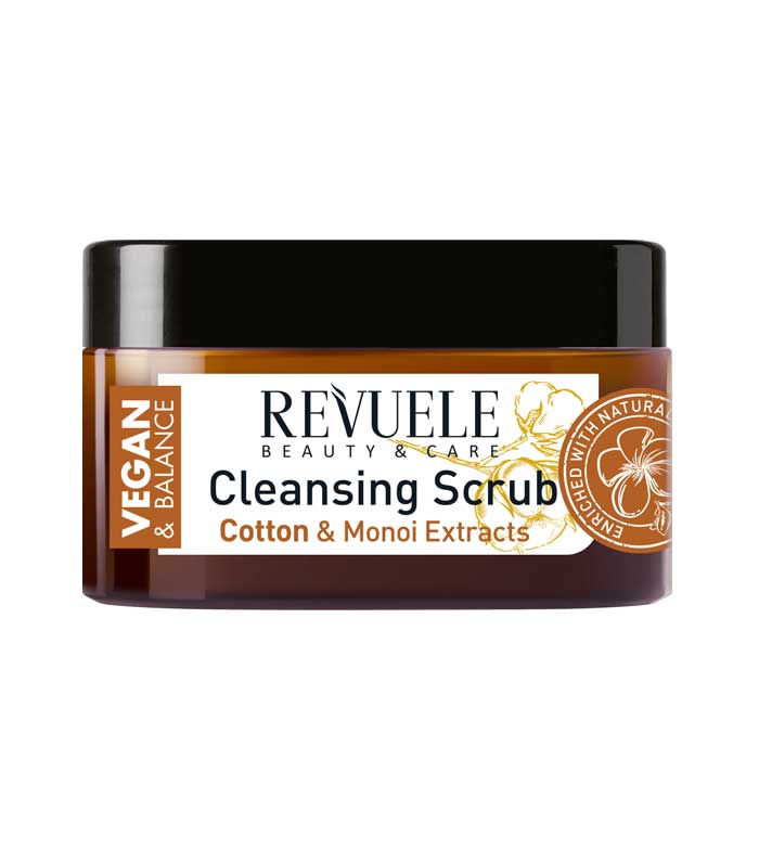 Esfoliação corporal Vegan & Balance com óleo de algodão e extrato de Revuele monoi.