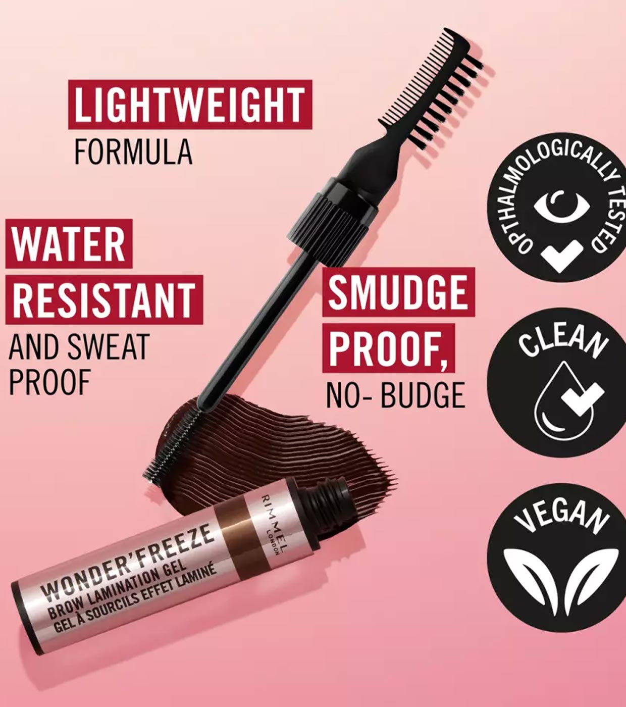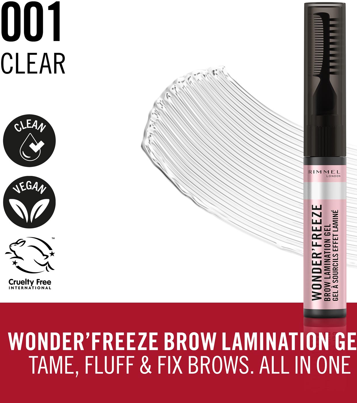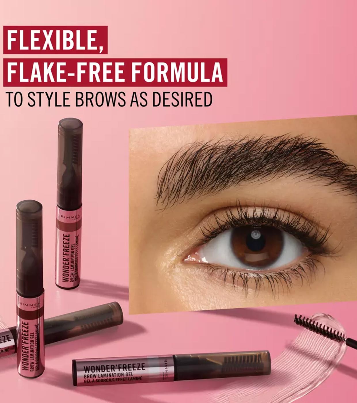Domine, estilize e defina suas sobrancelhas, tudo em um com o Gel Laminador de Sobrancelhas Wonder'Freeze da Rimmel!