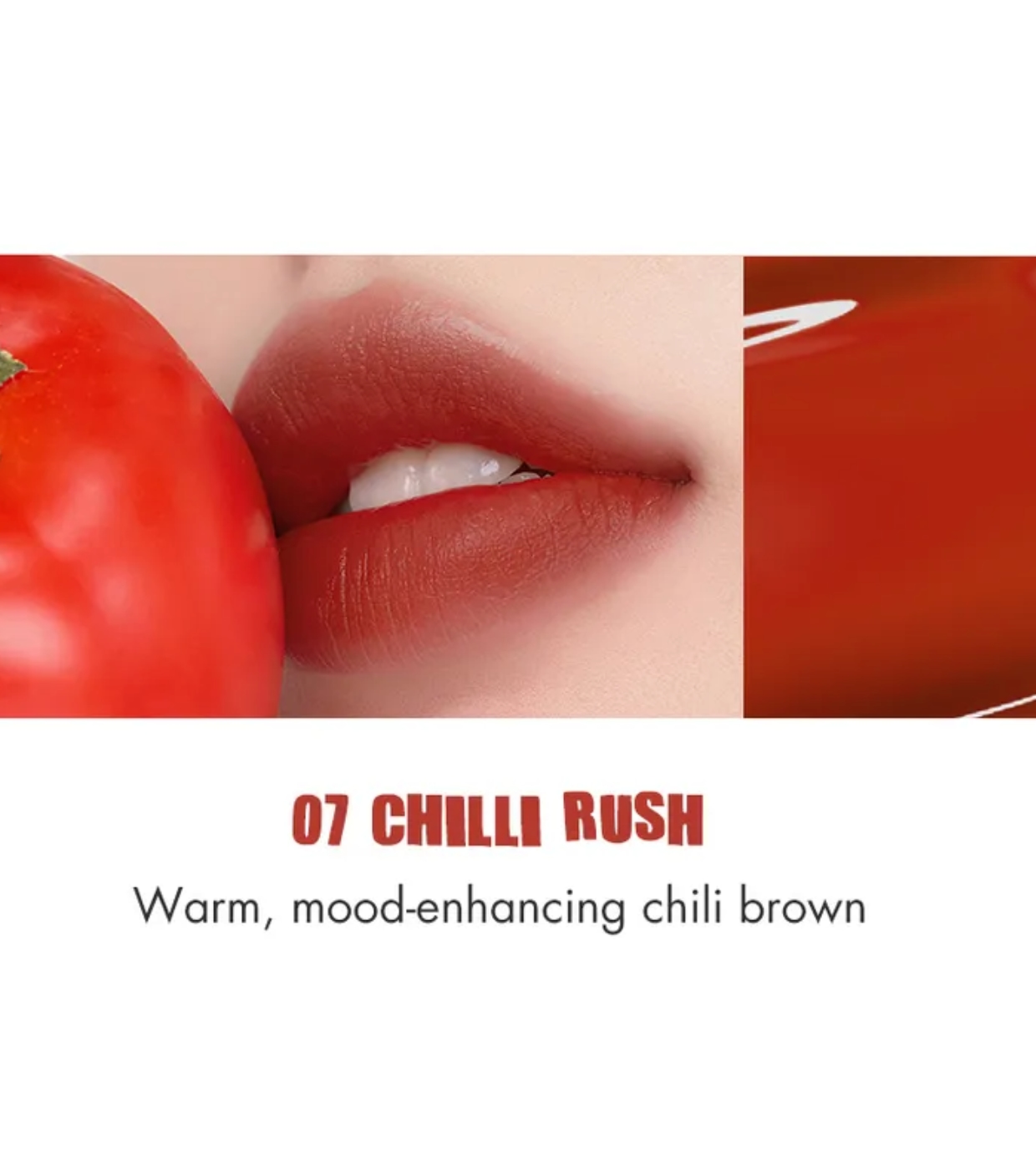 Este batom leve e à base de água cria uma camada fina e confortável que desliza suavemente, proporcionando um acabamento natural, translúcido e volumoso.