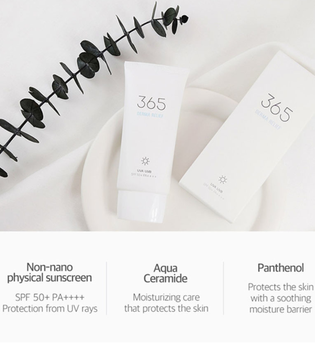 Derma Relief SPF 50+ PA+++ 365 Sunscreen Round Lab é um protetor solar à base de minerais desenvolvido para proteger a pele dos raios UVA e UVB.