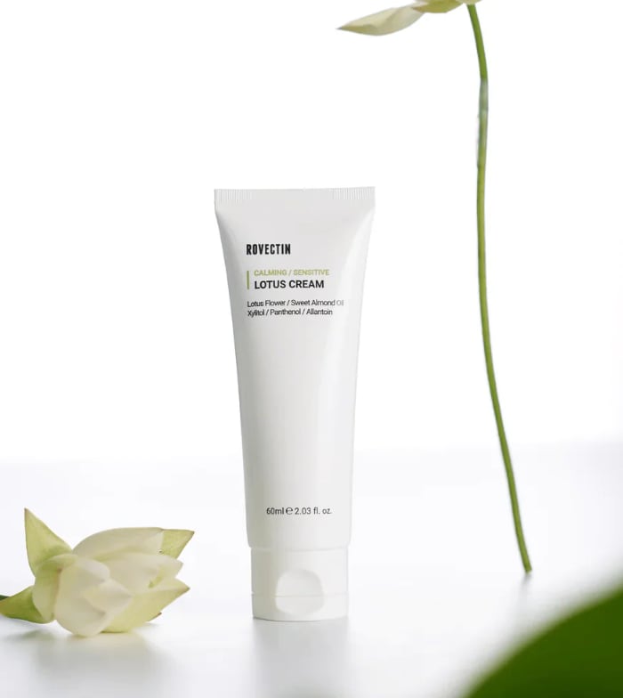 O Creme Calmante de Lótus da Rovectin é um creme facial vegano especialmente formulado para peles sensíveis, secas ou reativas.