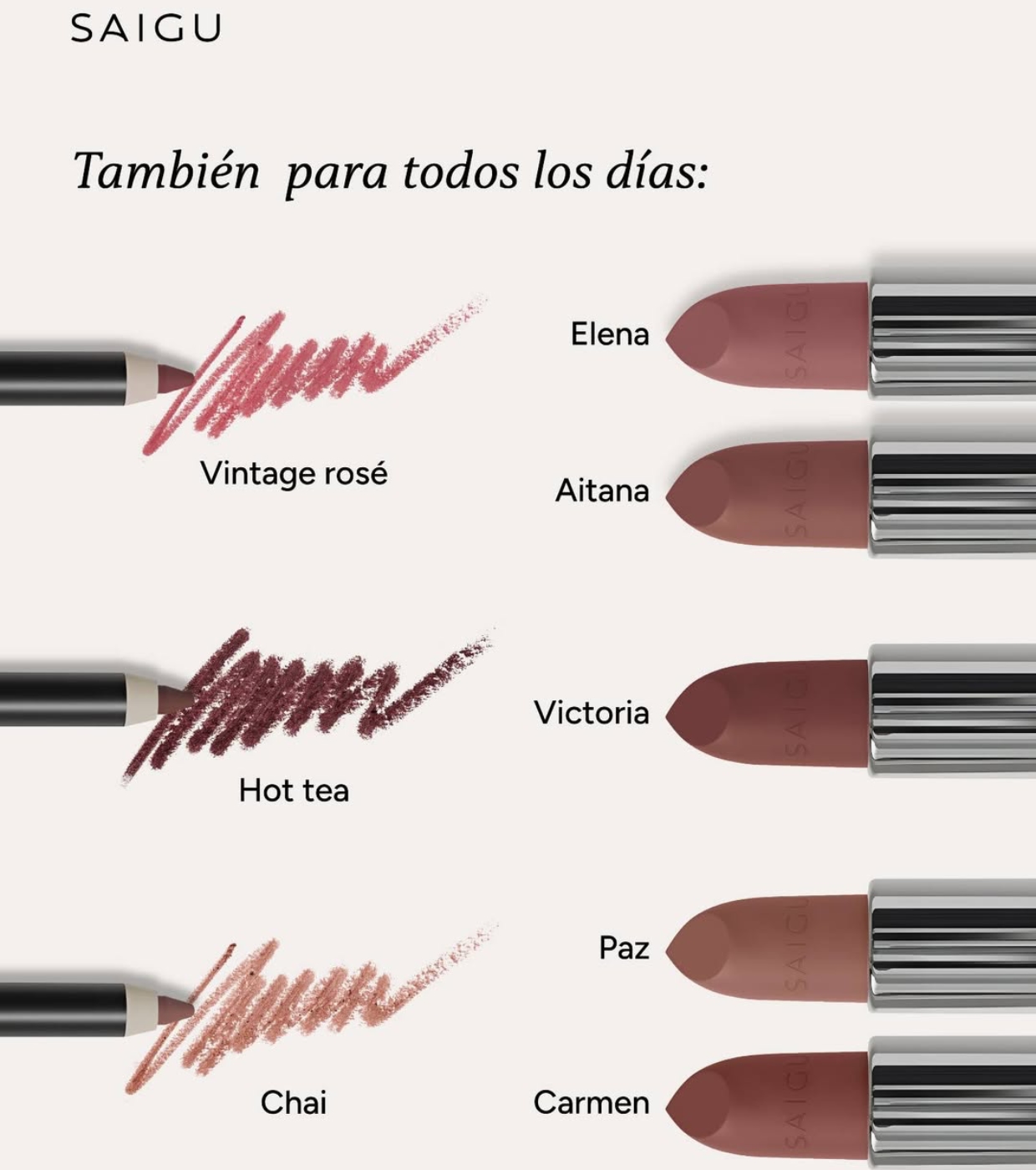 Complementa perfeitamente os batons SAIGU SAIGU e SAIGU, criando combinações harmoniosas e personalizadas.