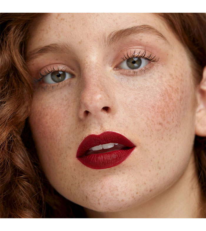 Uma textura suave e sedosa, muito cremosa, que deixa um acabamento semi-mate nos lábios e um acabamento aveludado . Crie uma camada bem fina e leve para não pesar ou perceber que você está usando.