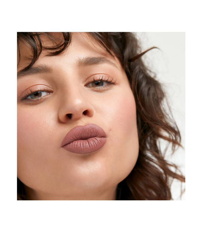Uma textura suave e sedosa, muito cremosa, que deixa um acabamento semi-mate nos lábios e um acabamento aveludado . Crie uma camada bem fina e leve para não pesar ou perceber que você está usando.