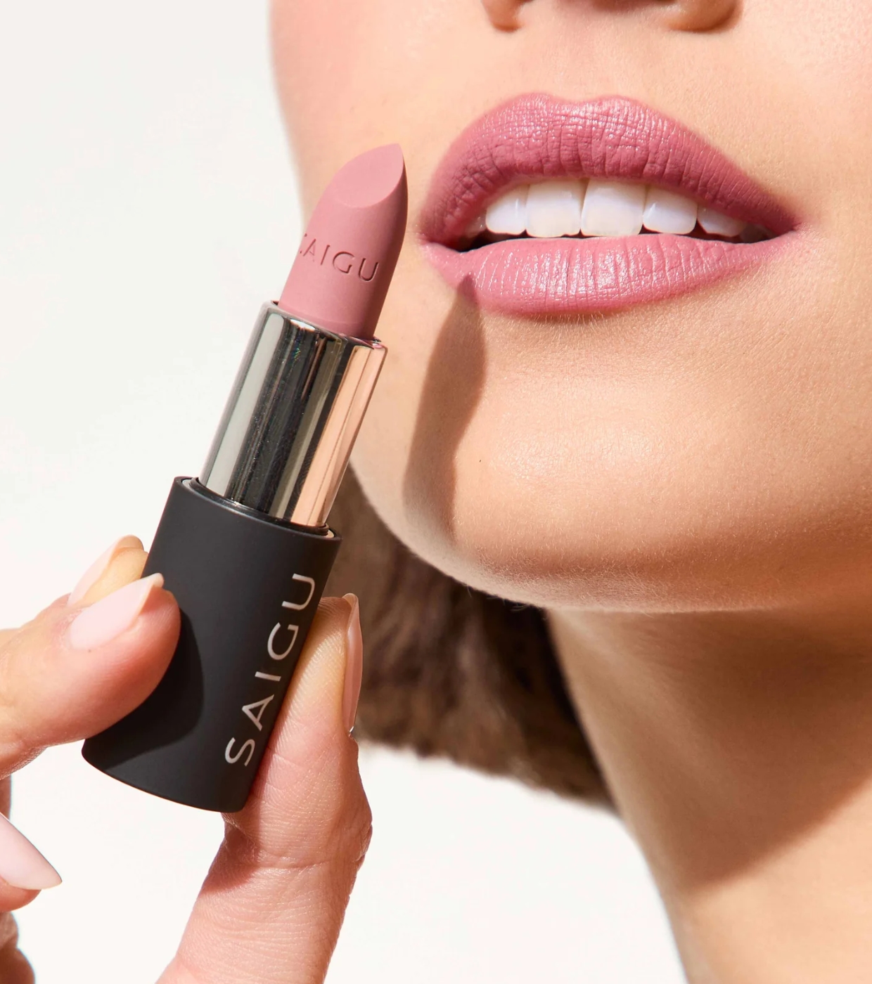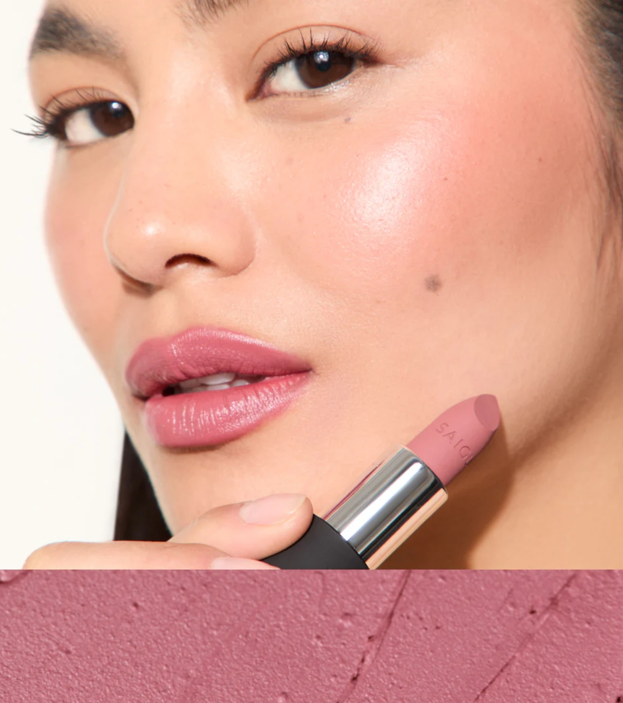 Uma textura sedosa e cremosa que deixa um acabamento semi-matte nos lábios e um acabamento aveludado. Ele cria uma camada muito fina e leve, de modo que não pesa e nem dá para perceber que você está usando.