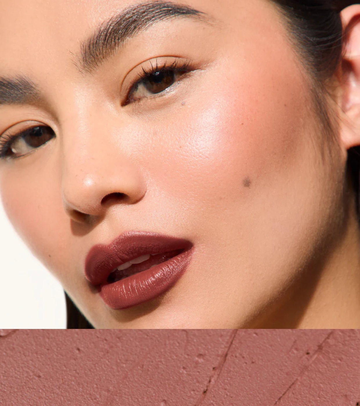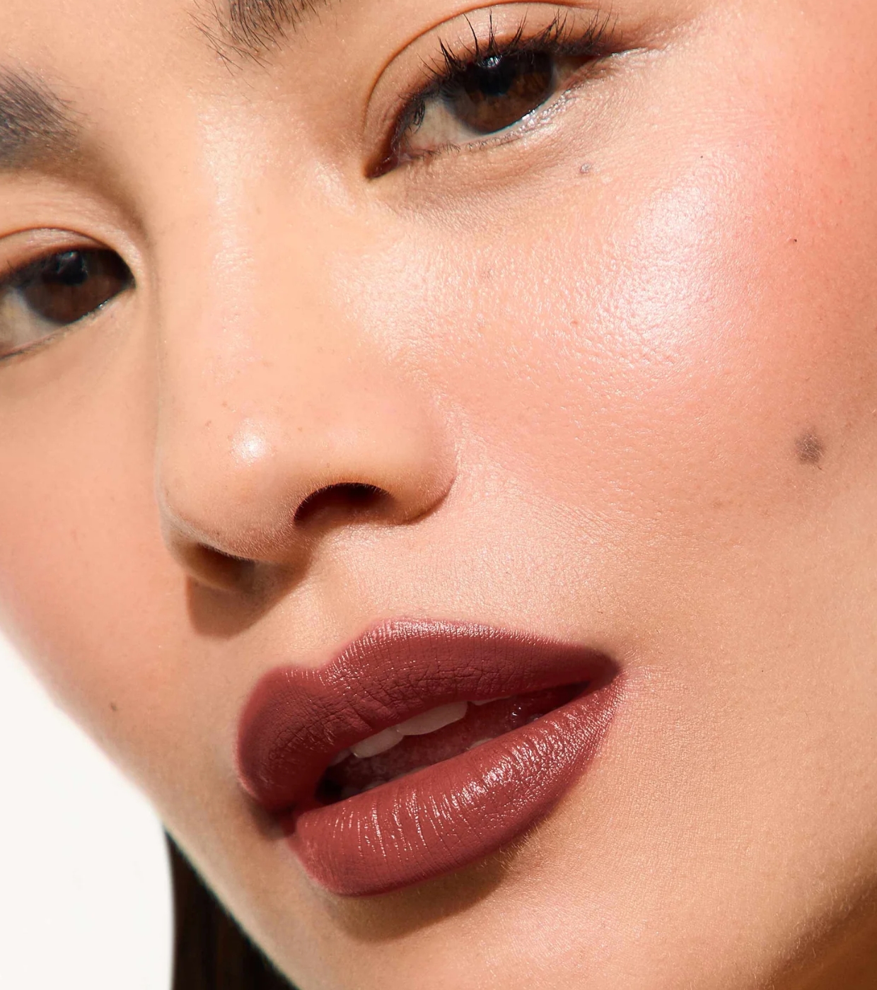 Uma textura sedosa e cremosa que deixa um acabamento semi-matte nos lábios e um acabamento aveludado. Ele cria uma camada muito fina e leve, de modo que não pesa e nem dá para perceber que você está usando.