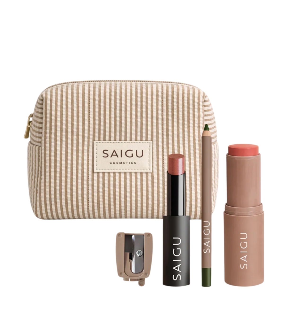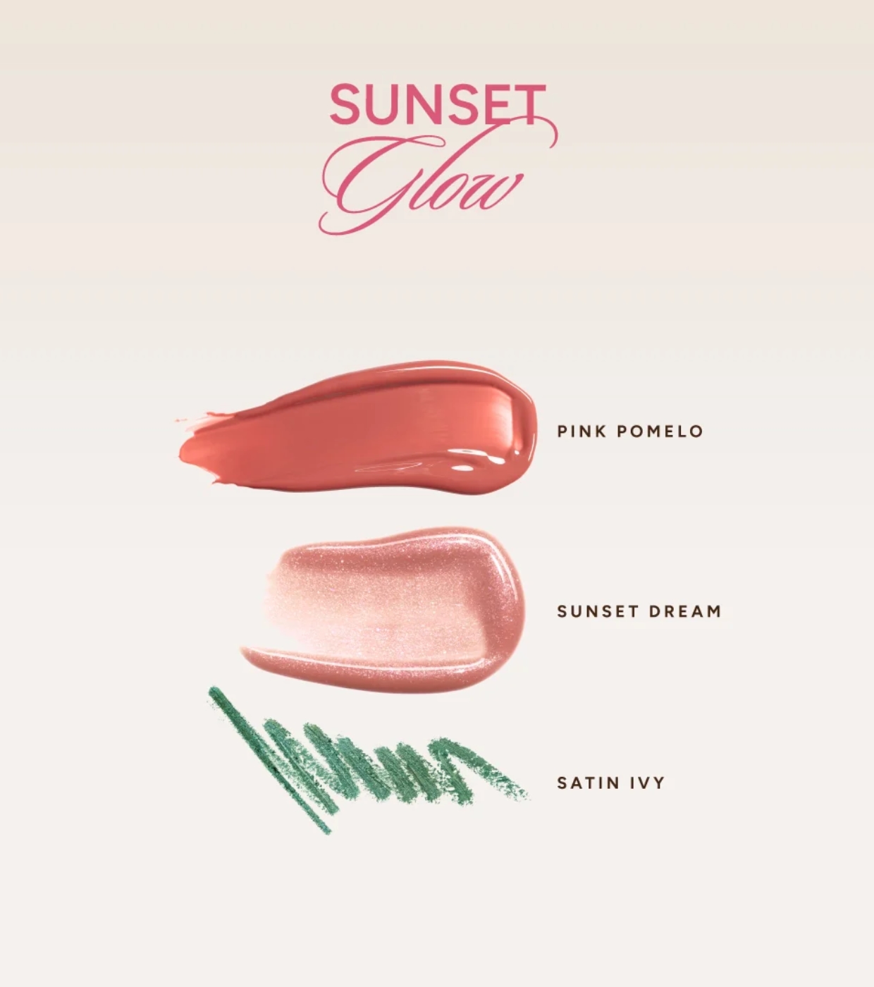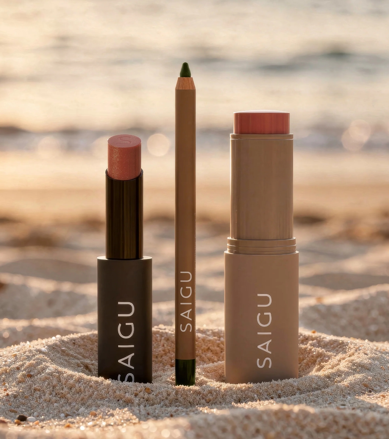 Consiga um look fresco e luminoso com um acabamento natural que realça a pele com um toque subtil de cor e luz, evocando o efeito de um rosto beijado pelo sol com este conjunto Sunset Glow da Saigu Cosmetics .