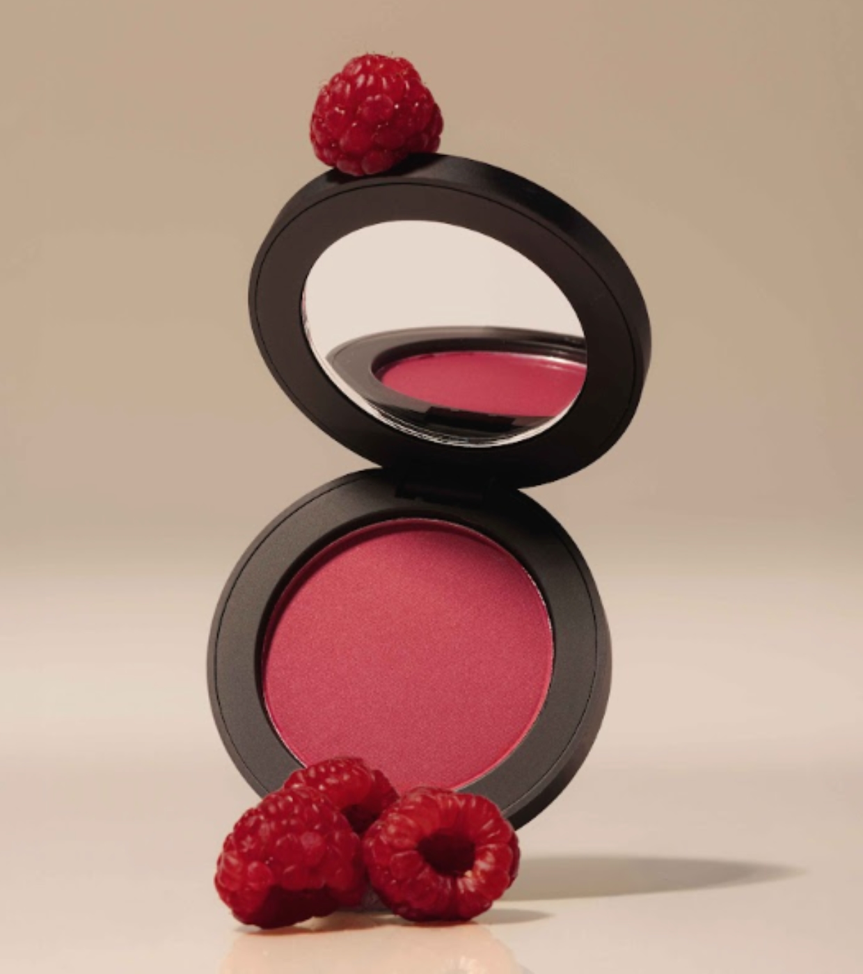 - 1 x Blush em Pó Audrey – vermelho granada neutro, acabamento natural e luminoso.