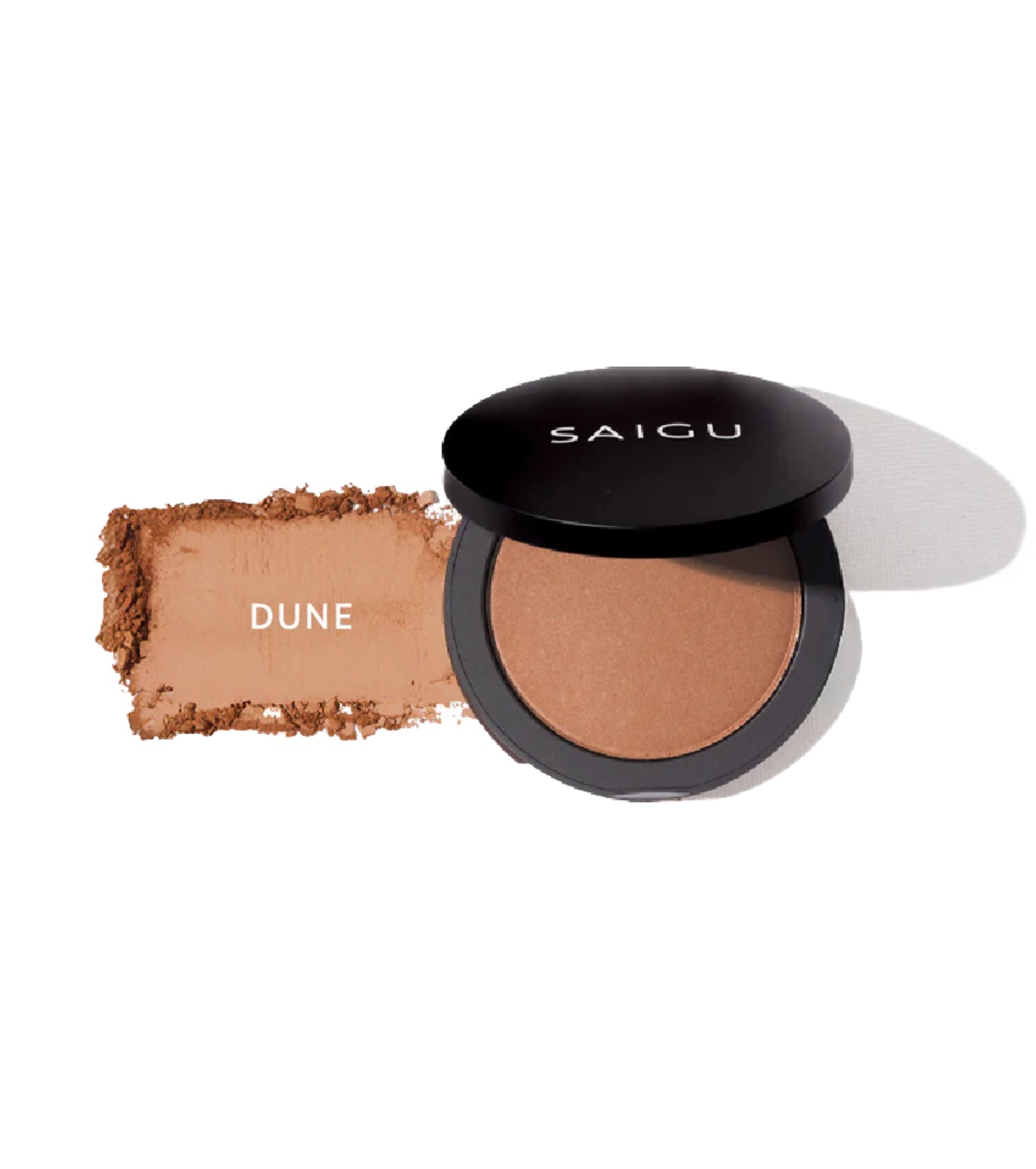 Descubra o pó bronzeador Saigu Cosmetics que oferece uma textura fina e sedosa, fácil de aplicar e espalhar para um acabamento perfeito.