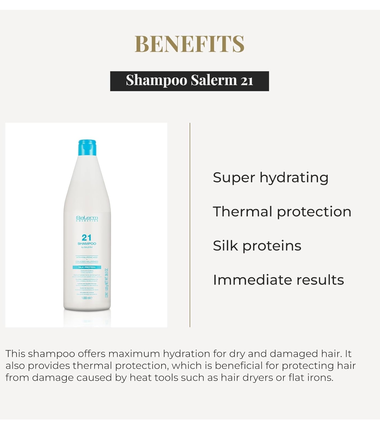 O shampoo Salerm 21 Silk Protein da Salerm é a escolha perfeita para quem busca cabelos mais macios, brilhantes e saudáveis desde a primeira lavagem.