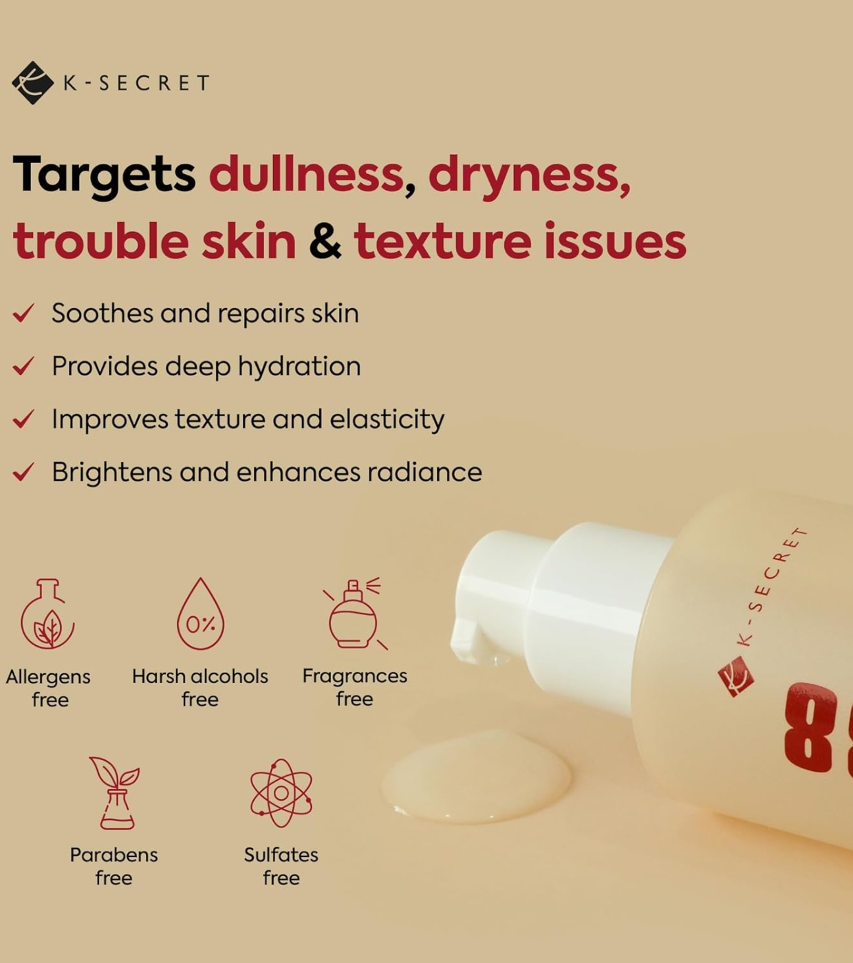 Enriquecido com extrato de arroz, água de arroz e fermento de arroz, proporciona brilho, maciez e hidratação profunda, ajudando a melhorar a textura e o tom da pele. Ideal para quem busca uma pele mais uniforme, radiante e saudável.