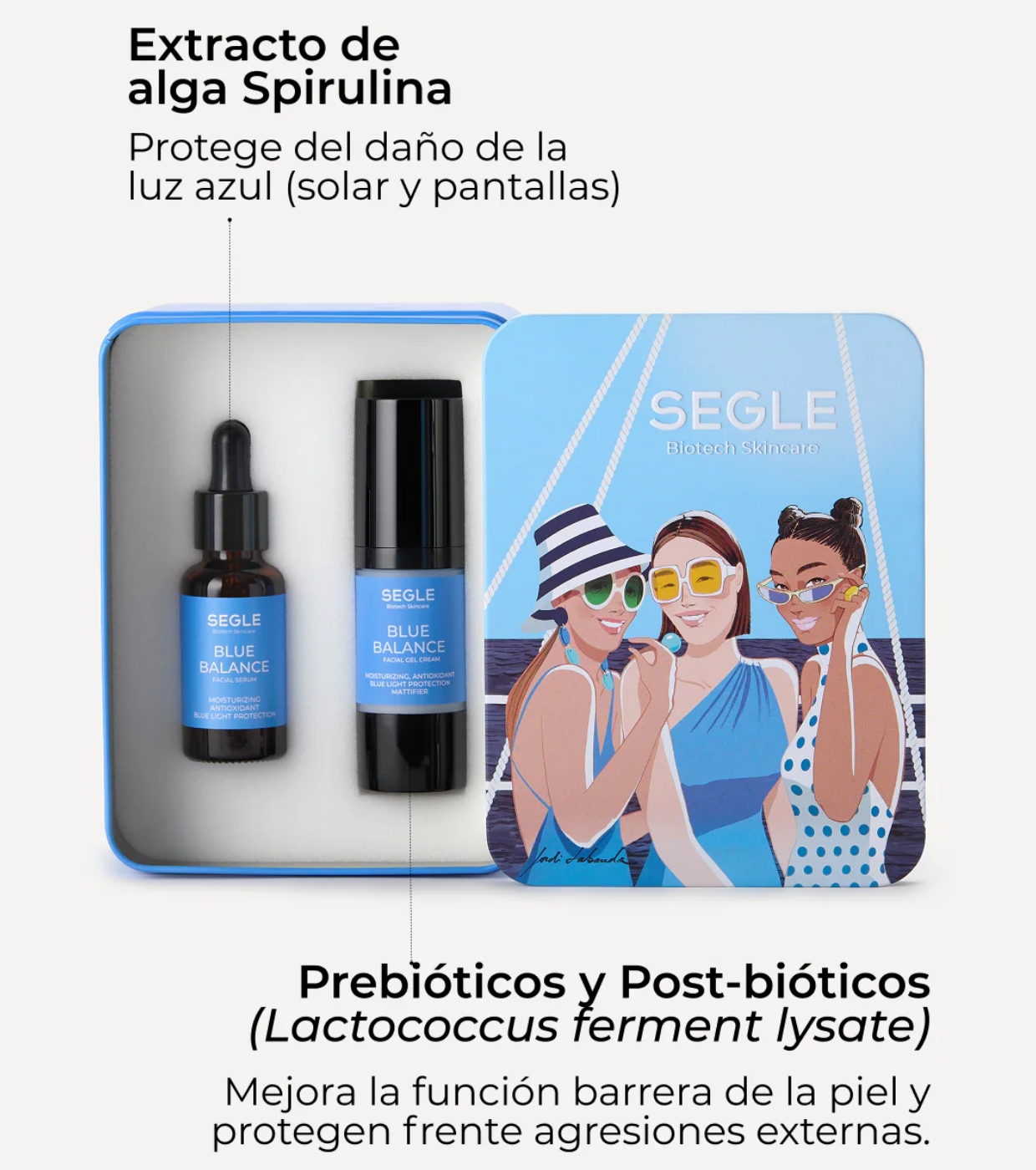 Equilibre, matifique e proteja o seu rosto com o Pack Blue Balance da Segle , apresentado numa caixa de colecionador exclusiva ilustrada por Jordi Labanda.
