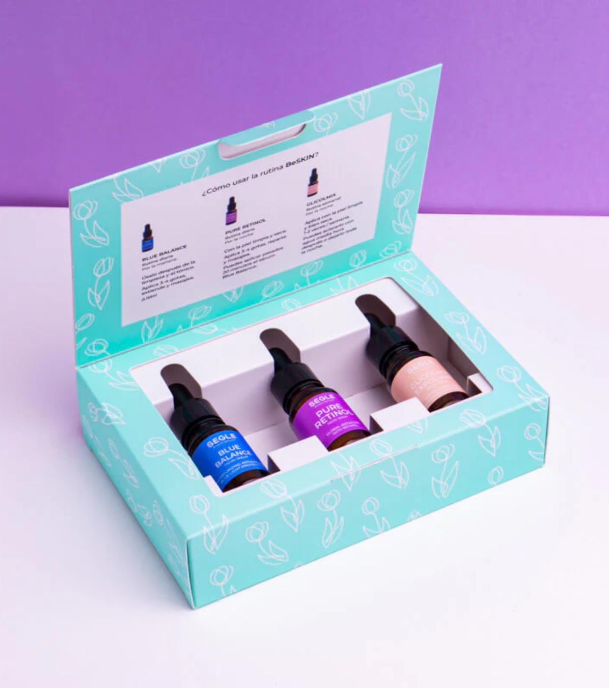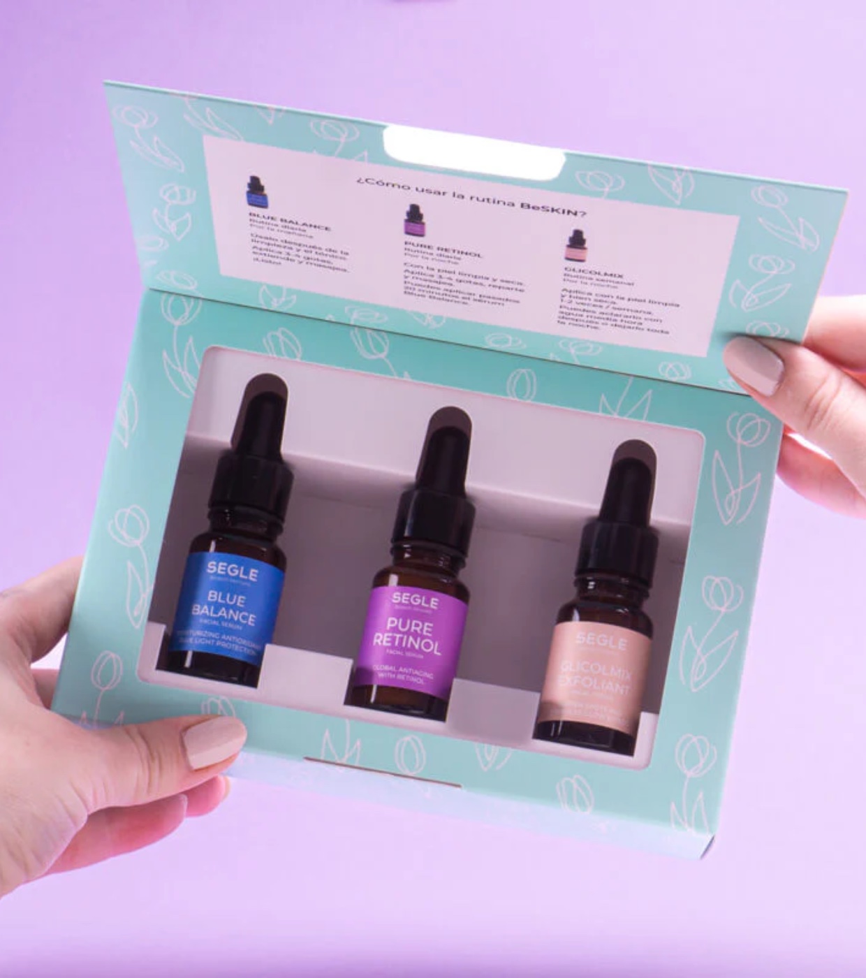 Pacote de rotina antienvelhecimento e reafirmante BeSKIN da @befarmacos da SEGLE.