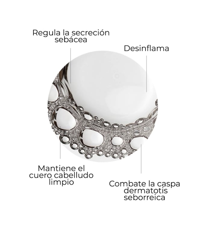A sua fórmula única reequilibra a microbiota do couro cabeludo, actuando como anti-inflamatório e anti-vermelhidão, e regula a secreção de sebo. É ideal para todos os tipos de couro cabeludo, especialmente oleoso, caspa ou dermatite seborreica.