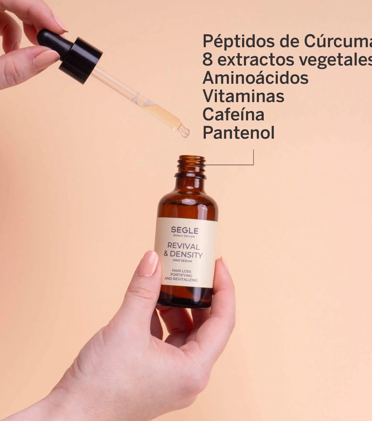 Com uma poderosa combinação de ingredientes como peptídeos de cúrcuma, cafeína, aminoácidos, vitaminas, pantenol e 8 extratos vegetais, este soro é seu aliado no combate à queda e na estimulação do crescimento capilar.