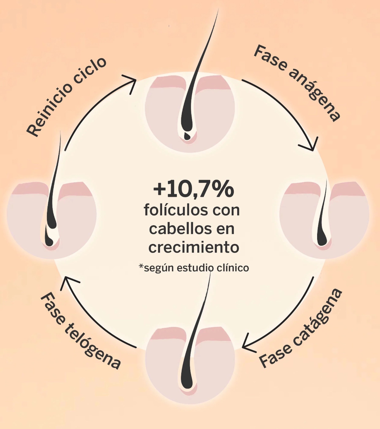 - Estimula o crescimento do cabelo: ativa o ciclo capilar e promove a regeneração do folículo capilar.