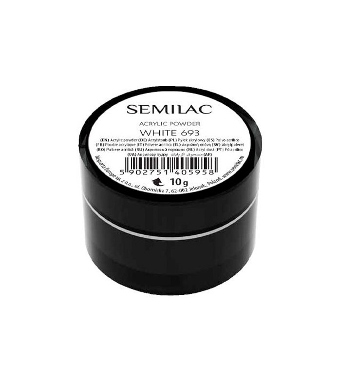 White 693 é um pó acrílico branco para decorar suas manicures semi-permanentes.