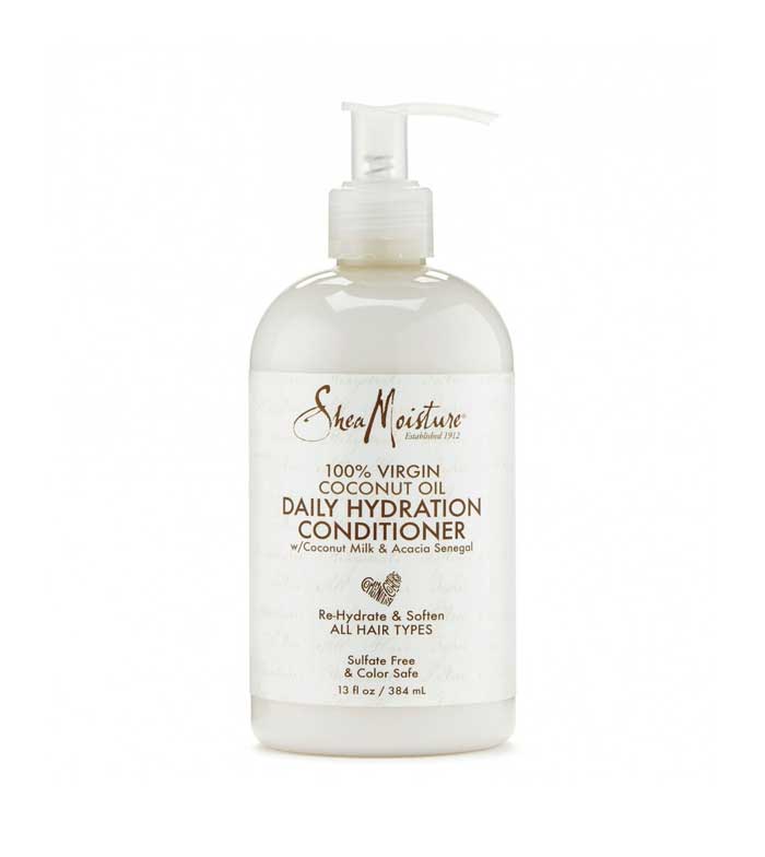 Daily Hydration 100% Virgin Coconut Oil Hidratação Diária 100% Óleo de Coco Virgem O Condicionador Rinse-Out reidrata, amacia e desembaraça os cabelos com facilidade e sem puxá-los.
