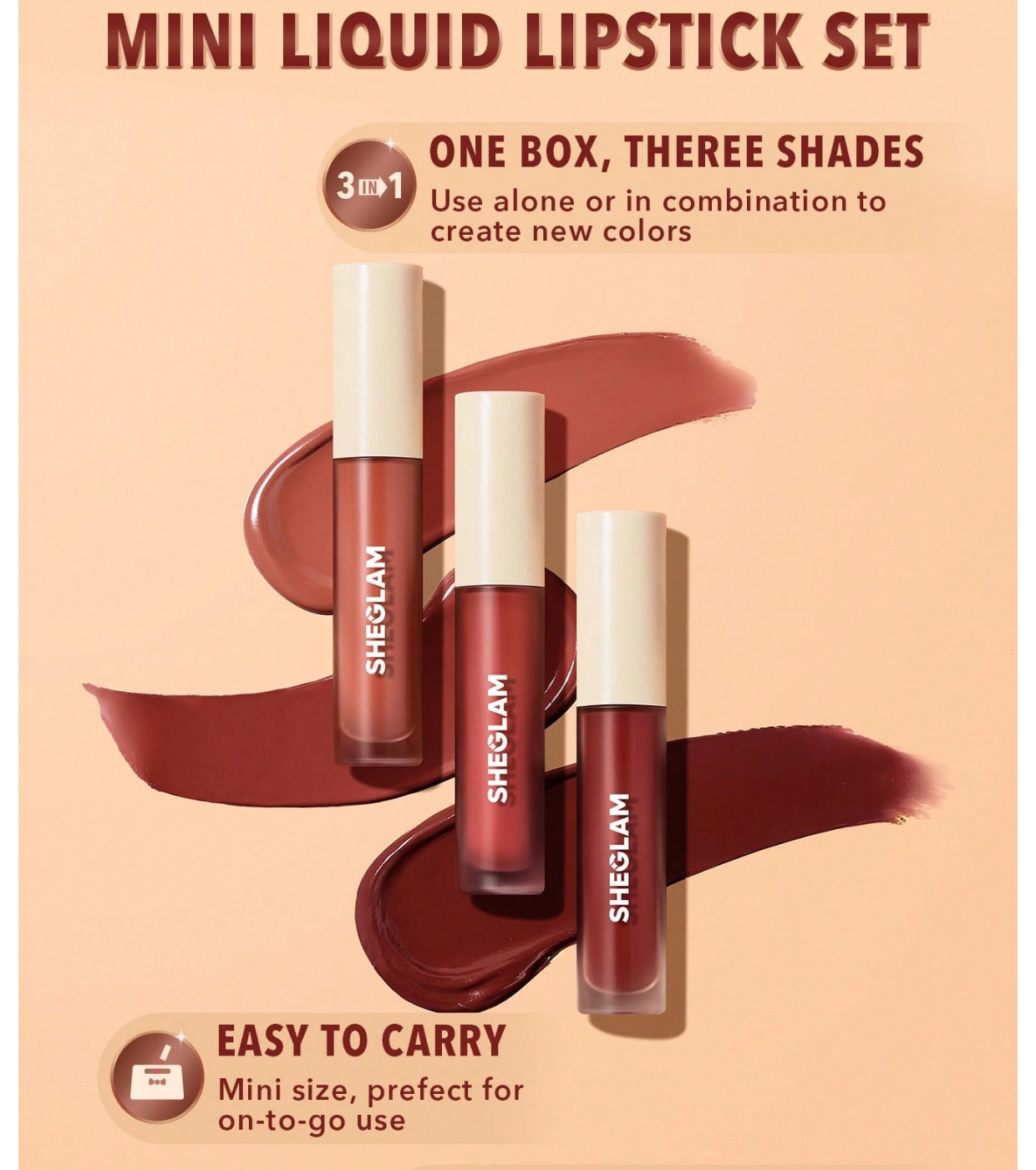 O conjunto de mini batons líquidos Matte Allure da SHEGLAM reúne seus tons favoritos em um formato mini prático, perfeito para levar na bolsa ou experimentar cores diferentes sem abrir mão de um acabamento profissional.