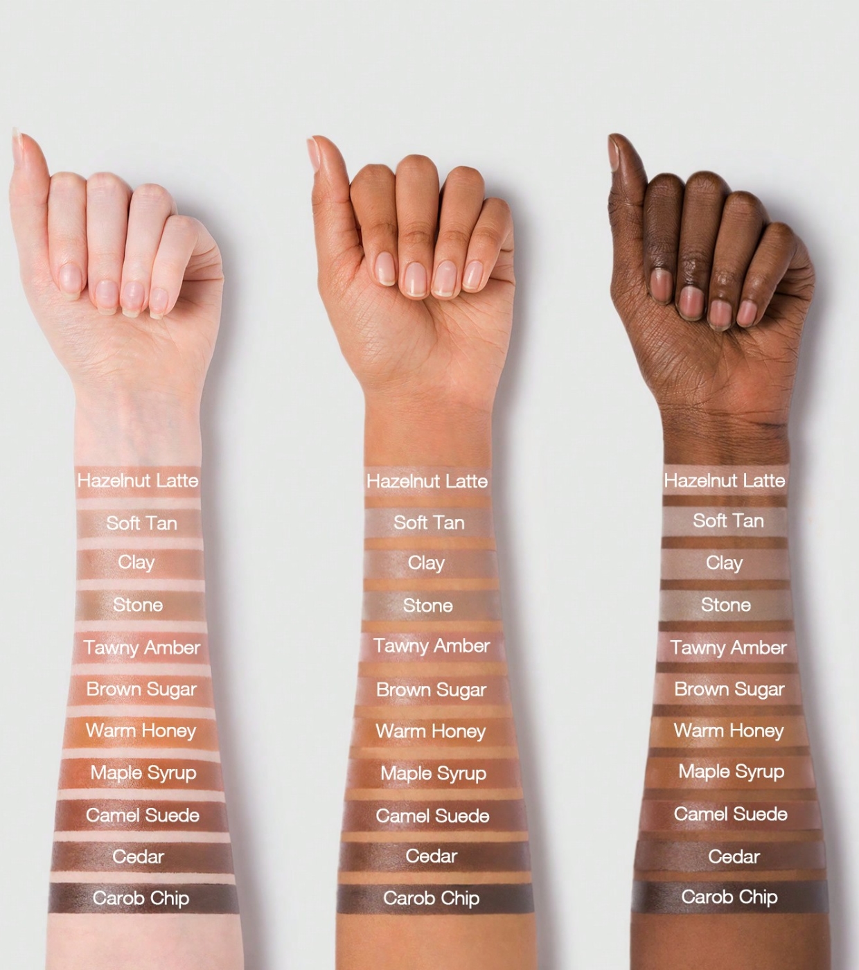 Sua textura leve e super fácil de espalhar se integra perfeitamente à pele, criando sombras naturais que realçam as maçãs do rosto, o maxilar e a testa sem deixar linhas marcadas.