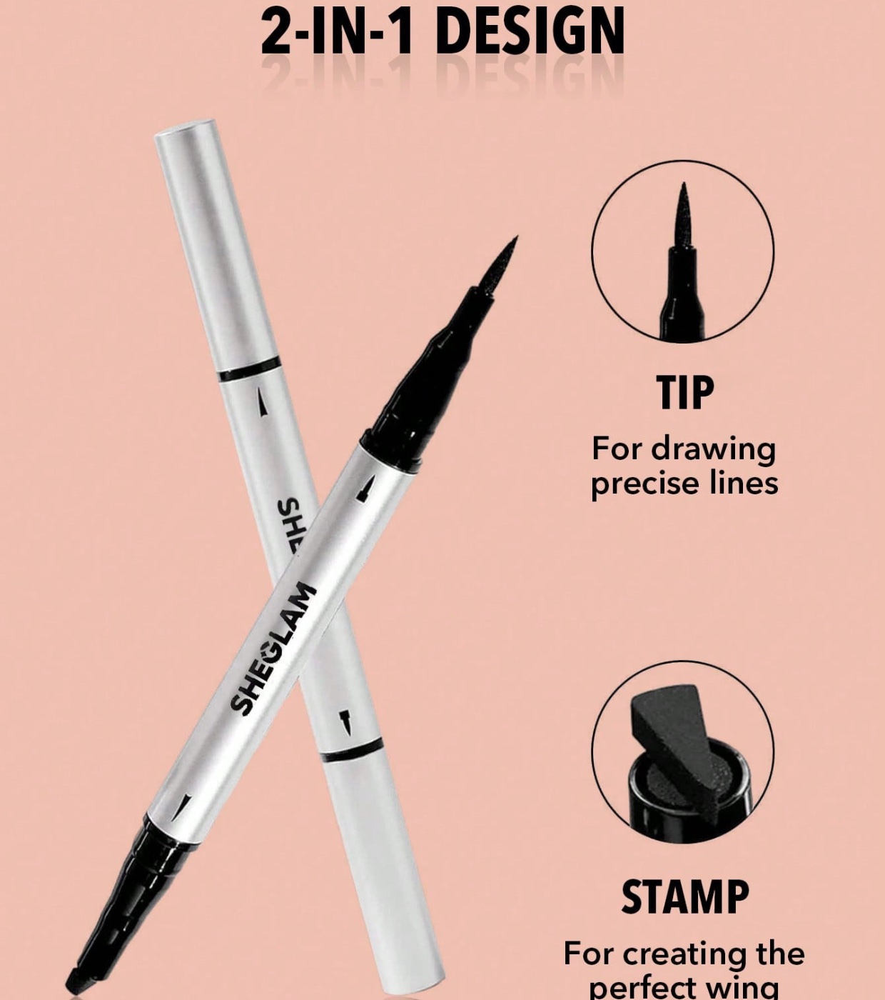 Consiga o delineado mais preciso e simétrico com este delineador 2 em 1 Wing It da SHEGLAM , desenvolvido para facilitar ao máximo a criação do clássico delineado gatinho.