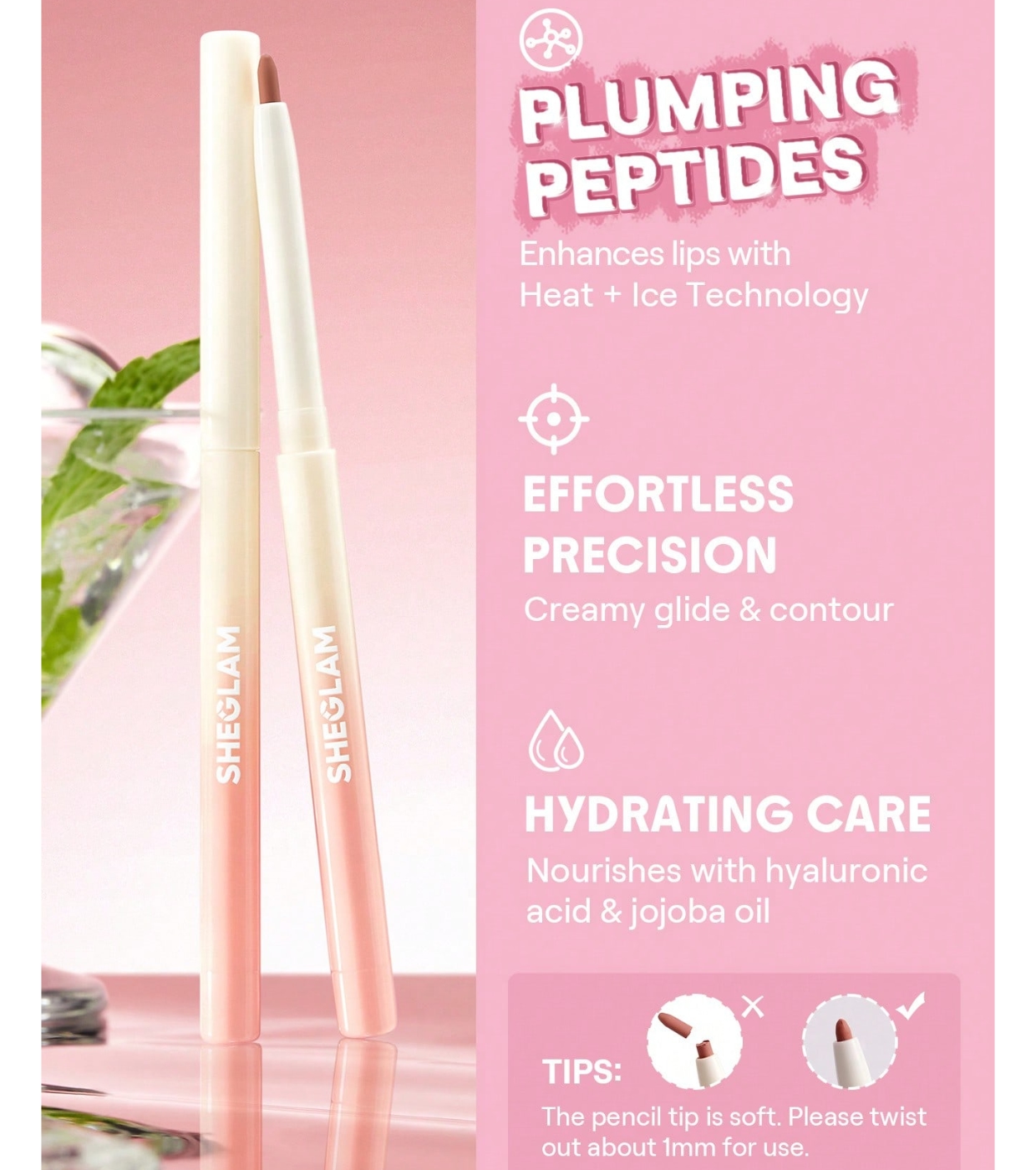 Defina, realce e aperfeiçoe seus lábios com este delineador labial SHEGLAM de alta precisão e textura sedosa, desenvolvido para proporcionar um acabamento impecável a cada aplicação.